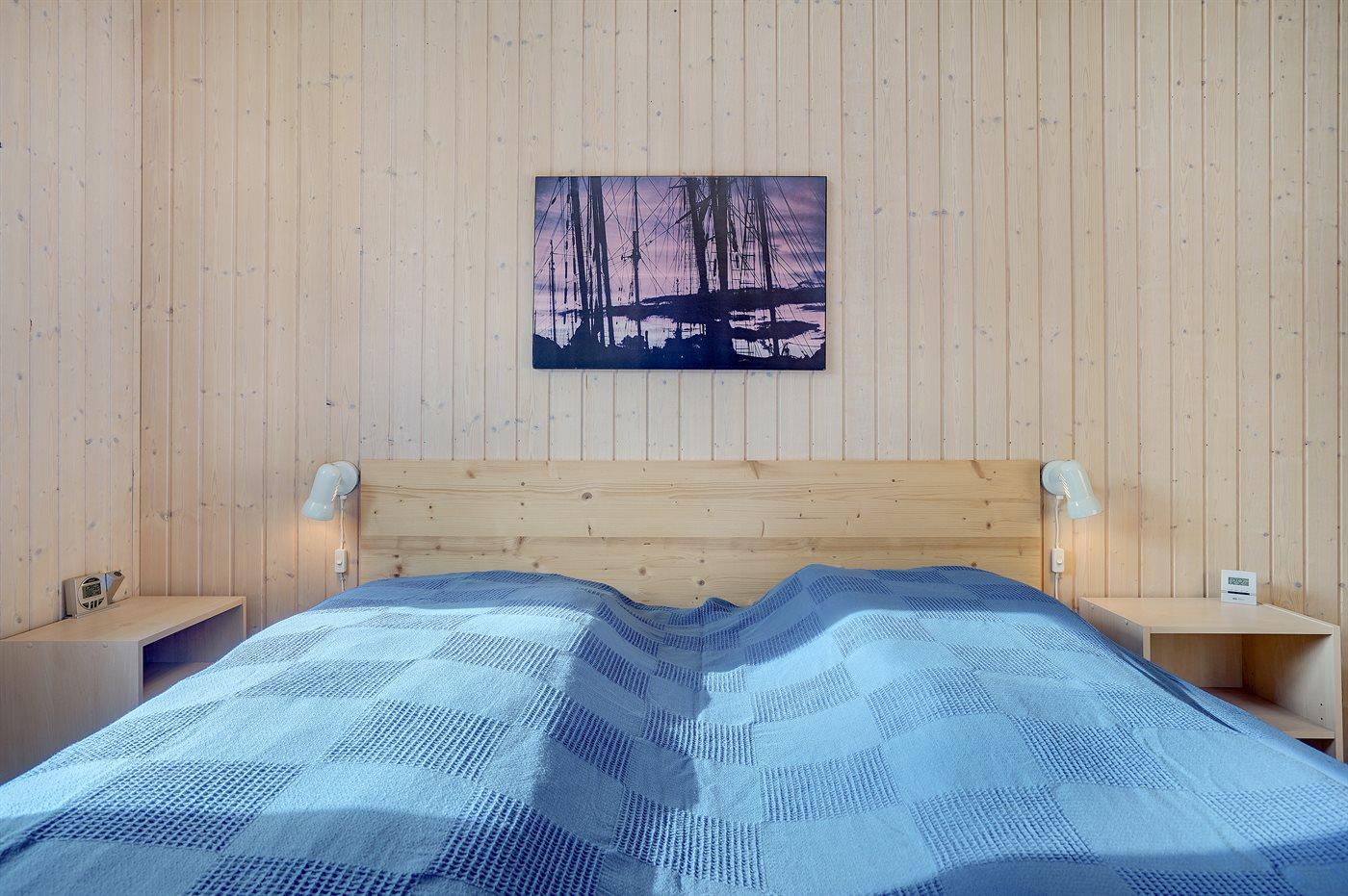 Der er i alt 3 soveværelser. Sovepladserne fordeler sig på: 2 sovepladser i dobbeltseng. 2 sovepladser i køjeseng. 2 sovepladser i sovesofa (dobbelt). 2 sovepladser på madrasser. 2 af disse sovepladser befinder sig på husets hems.
