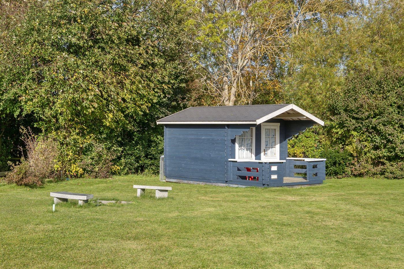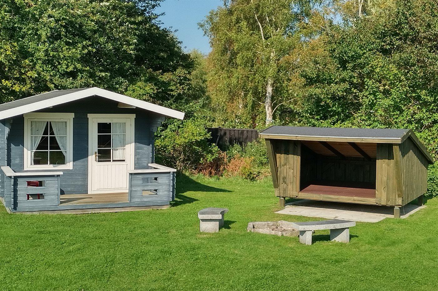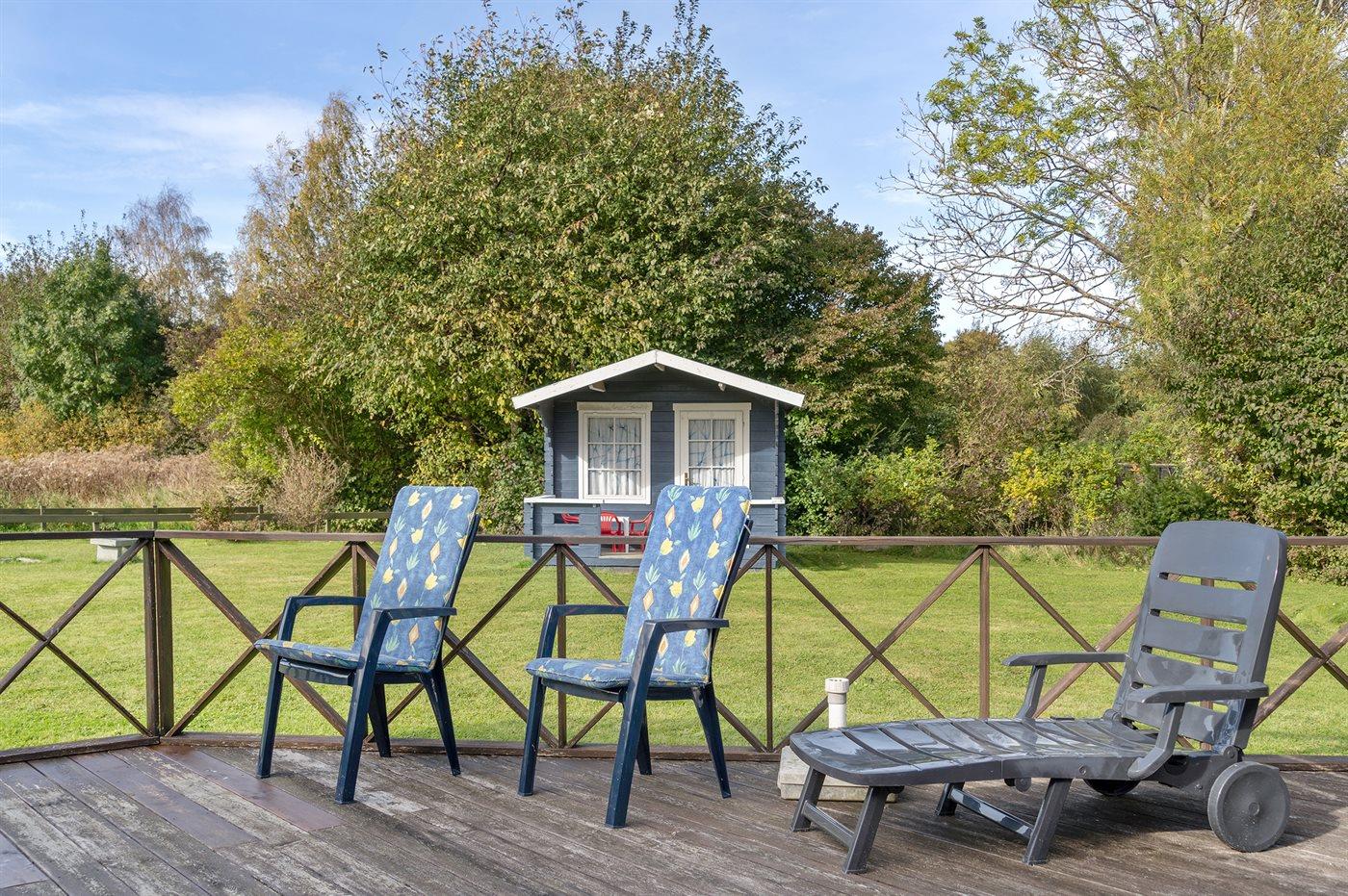 Ferieboligen er beliggende på en 1200 m² stor havegrund. Der er 1000 m til havet. Der er en sø i en afstand af 50 m. Nærmeste forretning er beliggende i en afstand af 600 m. Til ferieboligen hører 58 m² terrasseareal. Desuden er der 16 m² overdækket terrasse. Bålsted. Shelter. Parkering ved ferieboligen.