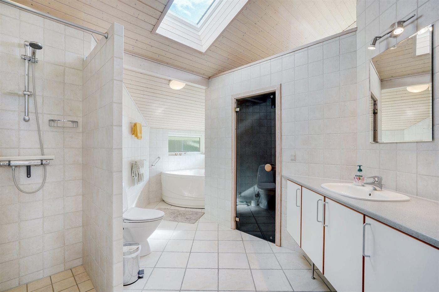 Der er 1 badeværelse med bruseniche og 2 toiletter, heraf 1 gæstetoilet. Der er gulvvarme på 1 badeværelse. I saunaen er der mulighed for afslapning.