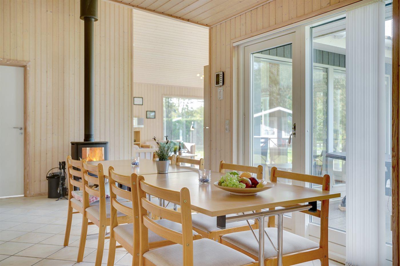 Sommerhuset egner sig til 8 personer. Ferieboligen er på 102 m² og er bygget i 2004. Det er ikke tilladt at medbringe husdyr. Ferieboligen er udstyret med energibesparende varmepumpe. Der er gulvvarme i stuen. Ferieboligen har vaskemaskine. Tørretumbler. Frysekapacitet på 87 liter. Der er desuden brændeovn. Til de små er der 1 stk. barnestol.