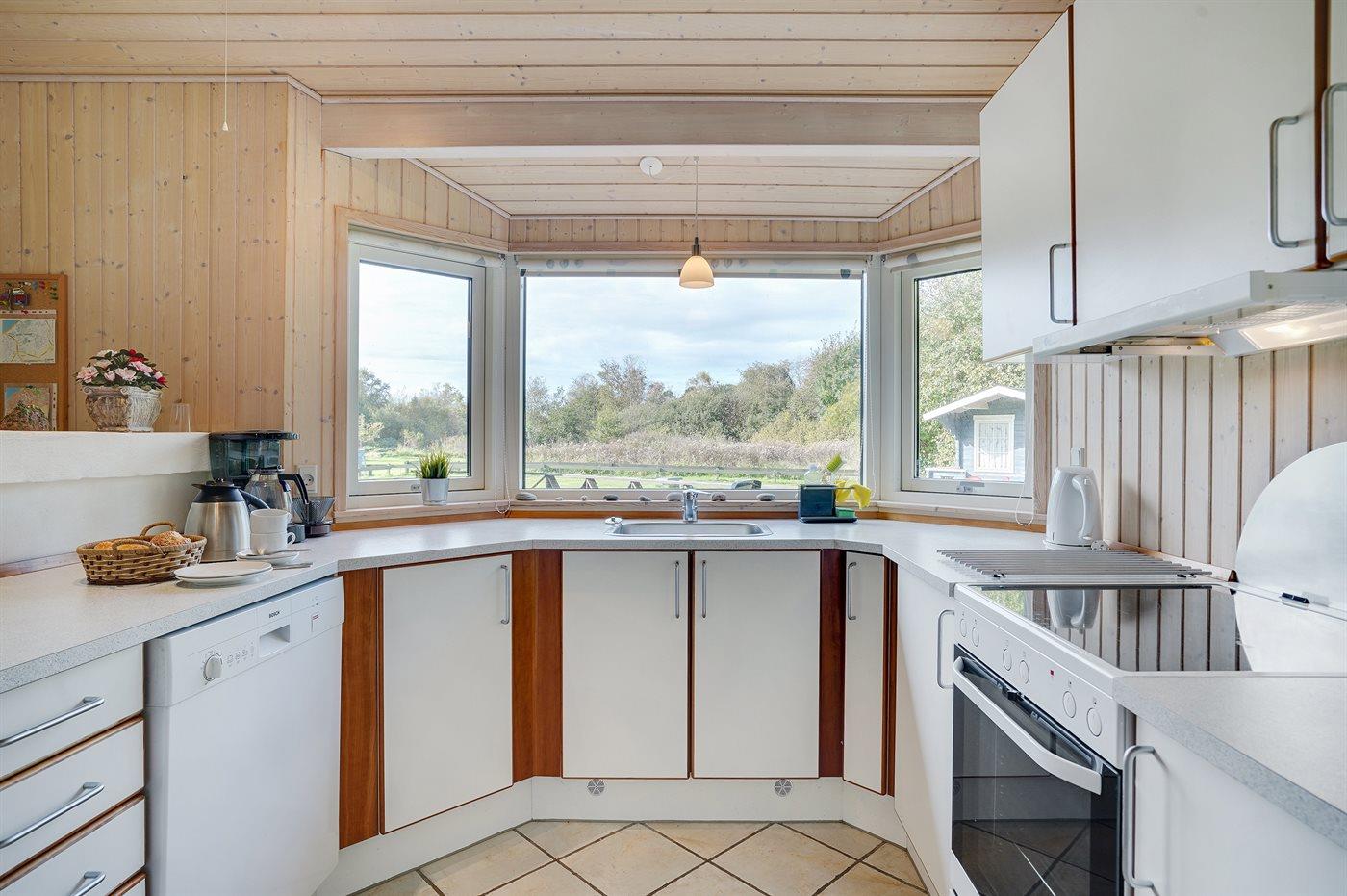 Køkkenet er udstyret med 1 køleskab. Der er 4 induktionskogeplader, varmluftovn, mikrobølgeovn samt opvaskemaskine.