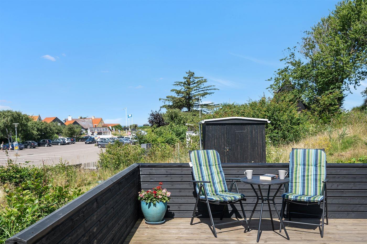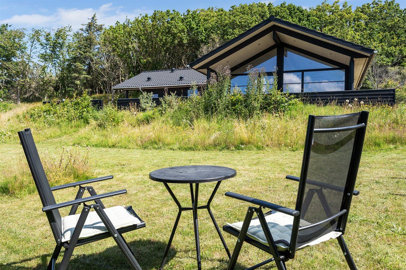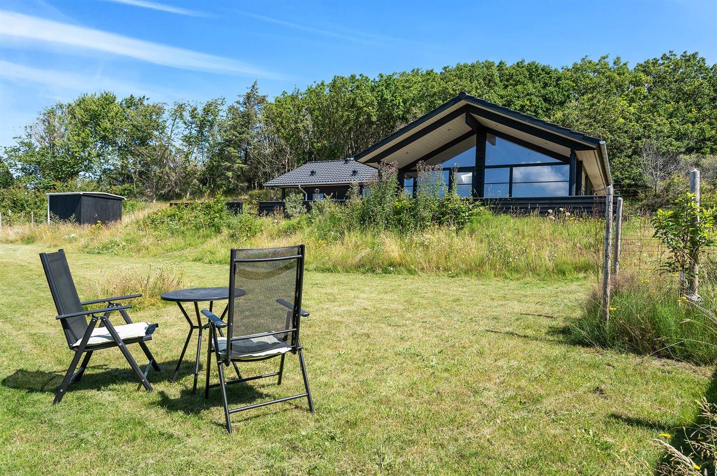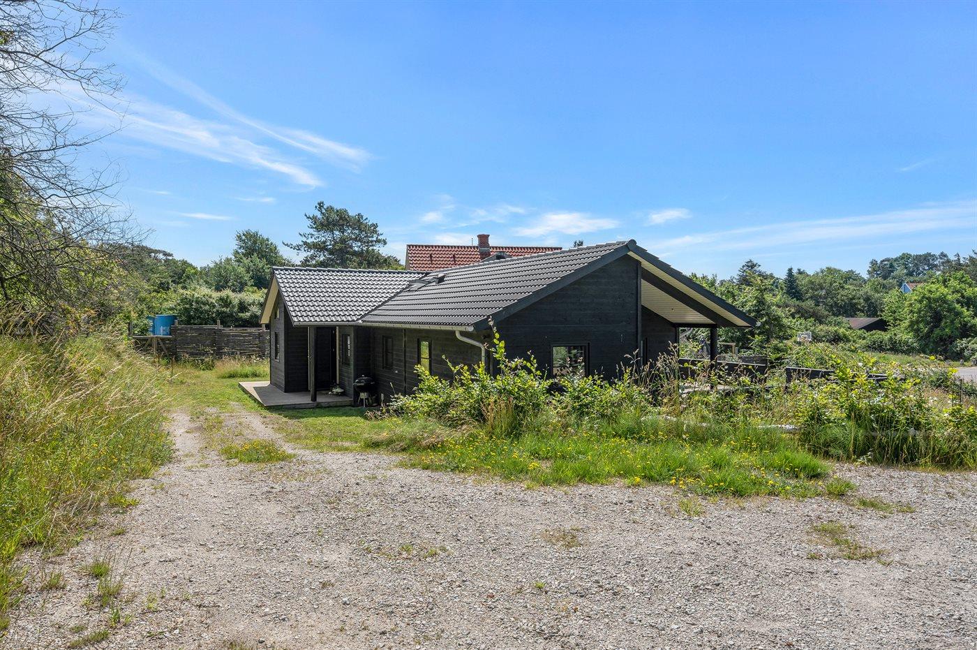 Ferieboligen er beliggende på en 1081 m² stor naturgrund. Der er 150 m til havet. Nærmeste forretning er beliggende i en afstand af 600 m. Til ferieboligen hører 100 m² terrasseareal. Desuden er der 16 m² overdækket terrasse. Grill til rådighed. Parkering ved ferieboligen.