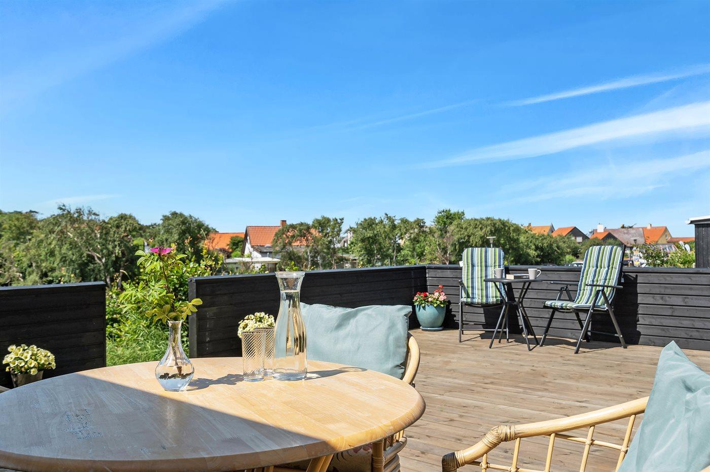Rummeligt sommerhus med havudsigt, moderne faciliteter og stor terrasse nær stranden i Rågeleje.