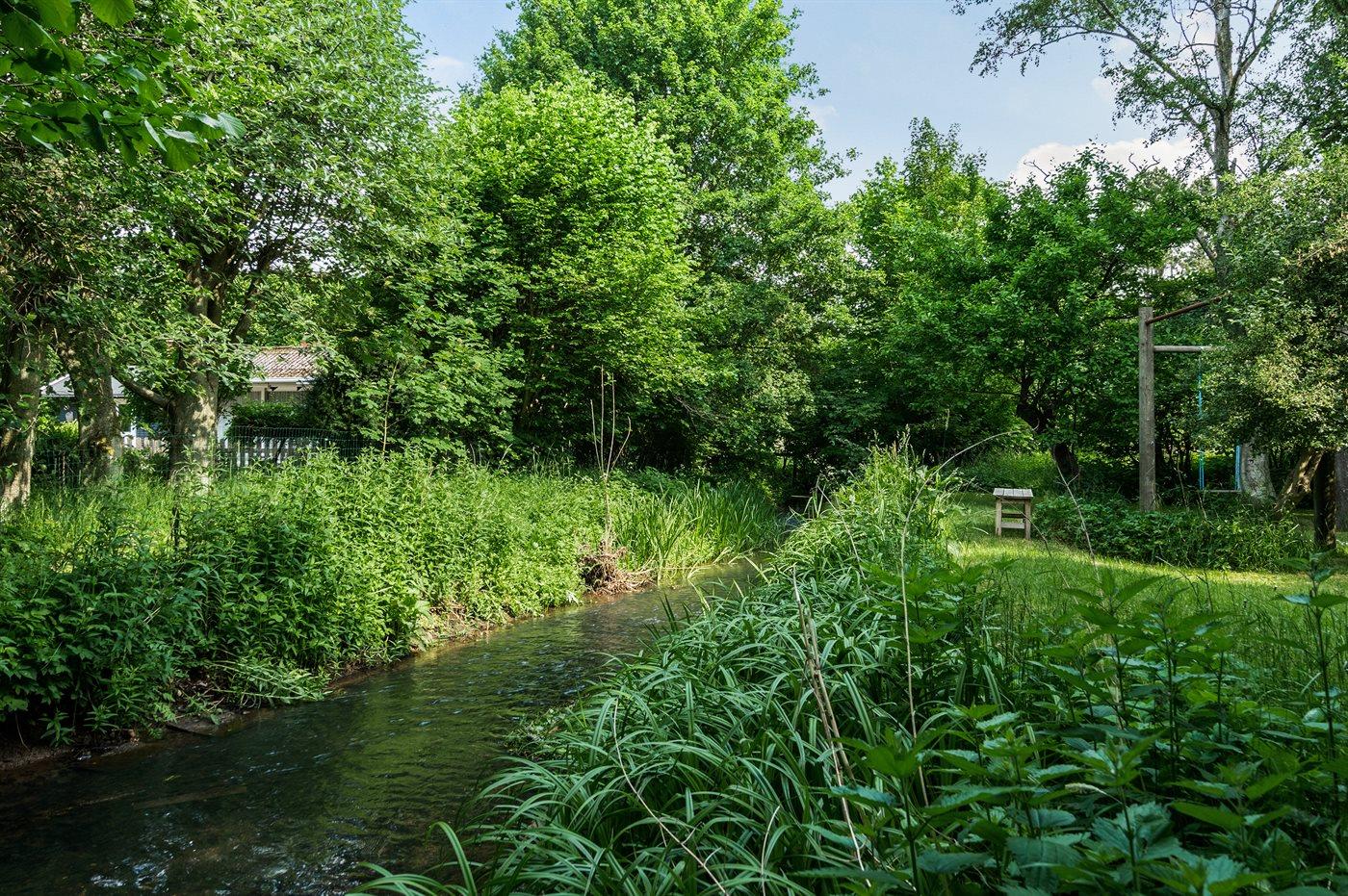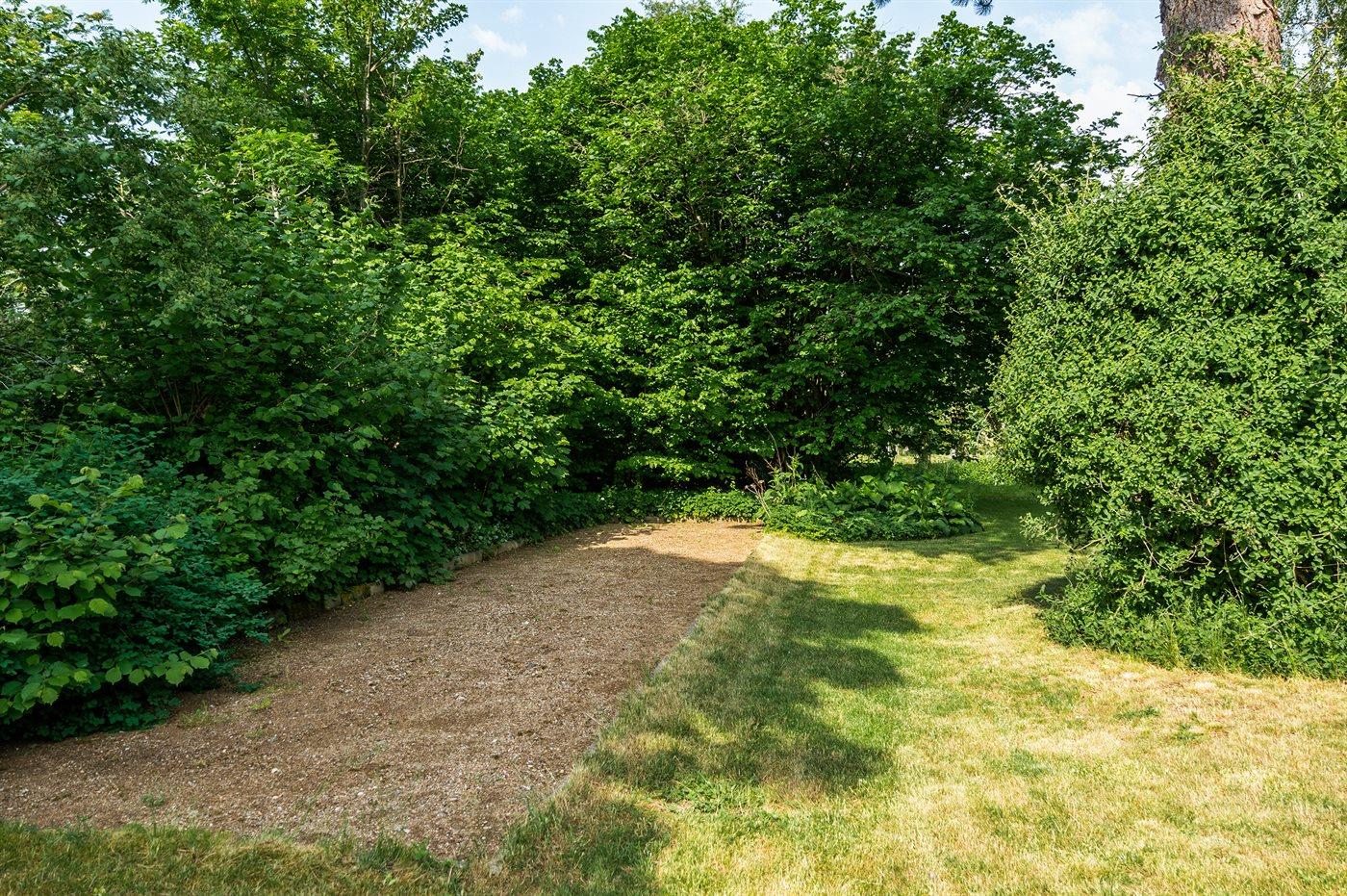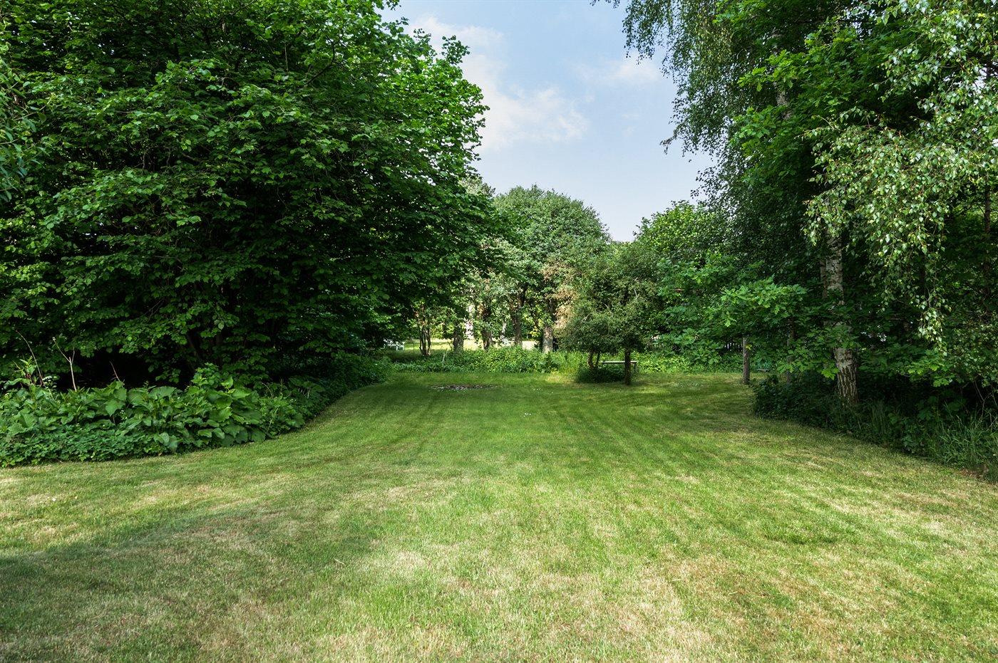 Hyggeligt sommerhus beliggende på en stor, idyllisk og beplantet grund med åløb i baghaven samt petanquebane ved huset.