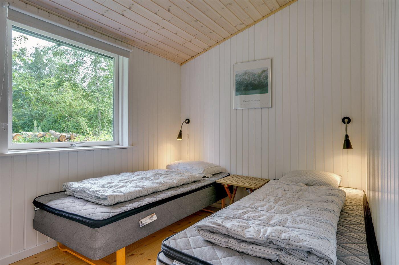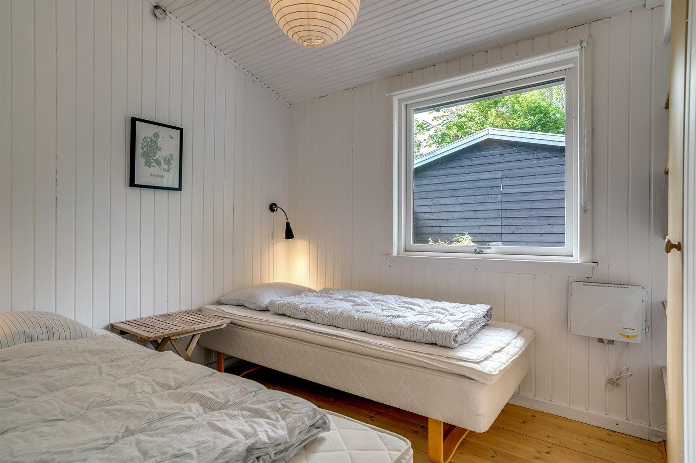 Der er i alt 3 soveværelser. Sovepladserne fordeler sig på: 2 sovepladser i dobbeltseng. 4 sovepladser i enkeltsenge. Derudover er der 1 stk. barneseng.