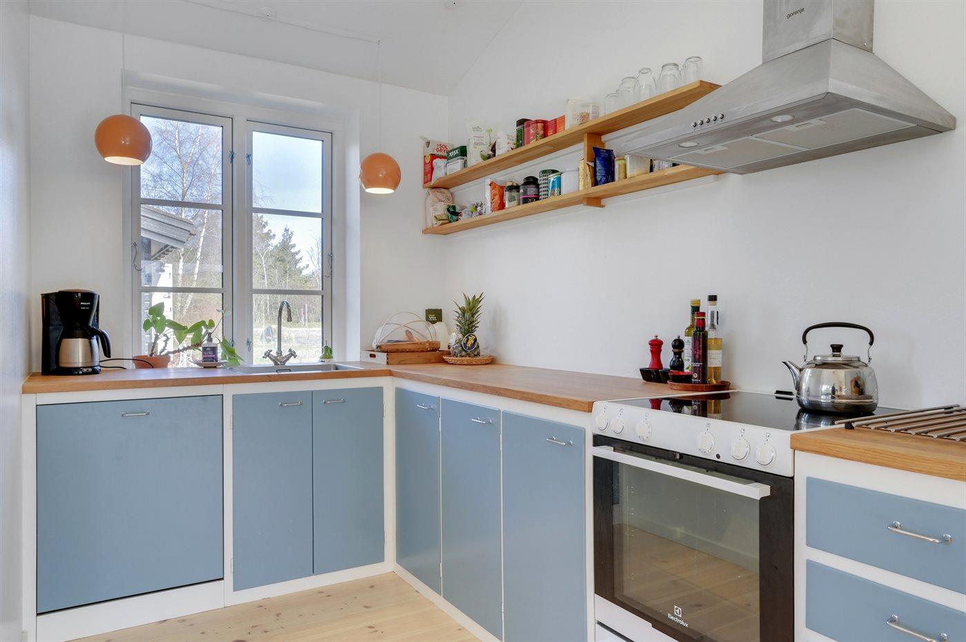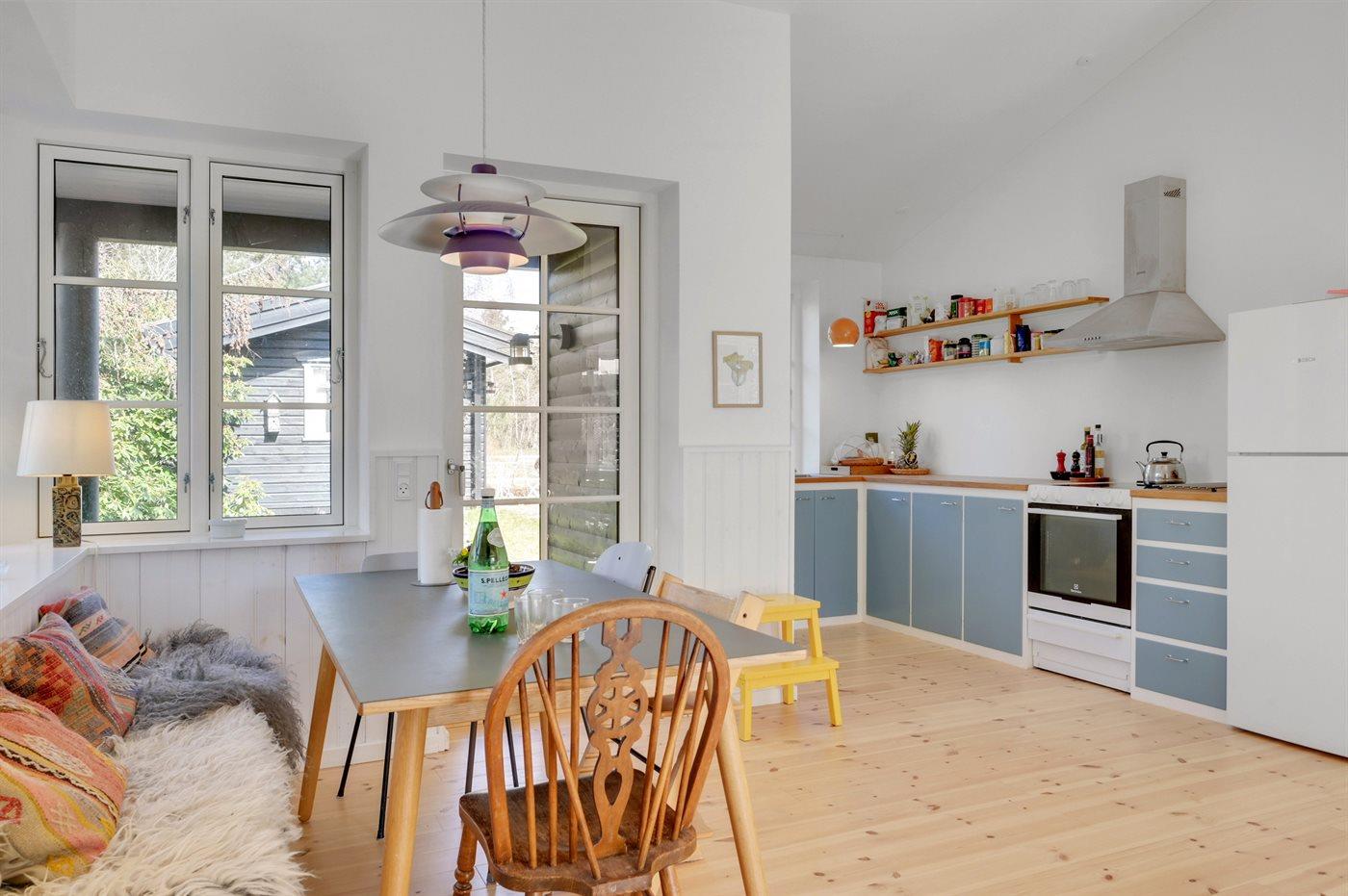 Køkkenet er udstyret med 1 køleskab. Der er 4 induktionskogeplader, varmluftovn samt opvaskemaskine.