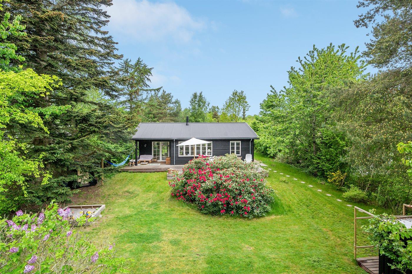 Ferieboligen er beliggende på en 1455 m² stor naturgrund. Der er 800 m til havet. Der er en badebro i nærheden. Nærmeste forretning er beliggende i en afstand af 1150 m. Der er en golfbane i en afstand af 11000 m. Til ferieboligen hører 50 m² terrasseareal. Gynge. Sandkasse. Bålsted. Grill til rådighed. Der er installeret stik til opladning af elbil. Type 2 stik. Med 22 kW ladeeffekt. Parkering ved ferieboligen.