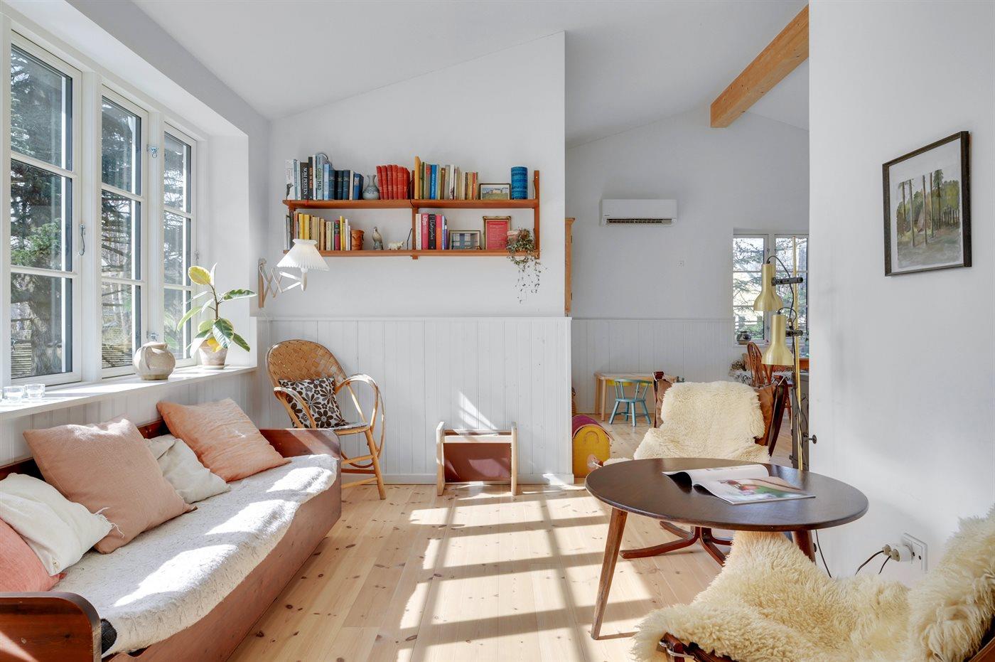 Dette sommerhus er den absolut bedste base for en afslappende ferie. Huset emmer af ro og der er indrettet med masser af hygge og charme. Der er mulighed for at tilbringe gode stunder sammen i det åbne køkken med spiseplads samt stue ud i et. Desuden findes der en stor sydvendt og til dels overdækket træterrasse. I selve huset findes 4 af de i alt 6 sovepladser. I annekset findes der tillige 1 soveværelse med 2 sovepladser i dobbeltseng samt eget badeværelse med toilet og bruseniche. Huset er derfor ideelt for to familier eller flere generationer, som ønsker at tilbringe ferien sammen. Huset er beliggende på en stor ugenert grund, hvor græsset får lov til at vokse lidt vildt og hvor der kun bliver slået stier. I gåafstand findes en god og børnevenlig strand med badebro. På vejen dertil passerer I en hyggelig campingplads og kan vælge at gå igennem det unikke og bakkede naturområde Heatherhill. I køreafstand ligger den hyggelige fiskeriby Gilleleje med det oprindelige fiskerlejes charme og idyl. Her er der rig mulighed for at købe eller spise frisk fisk på havnen og besøge byens øvrige cafeer, restauranter og butikker. Besøg også de øvrige byer på Nordkysten som for eksempel Hornbæk, Dronningmølle og Tisvildeleje.