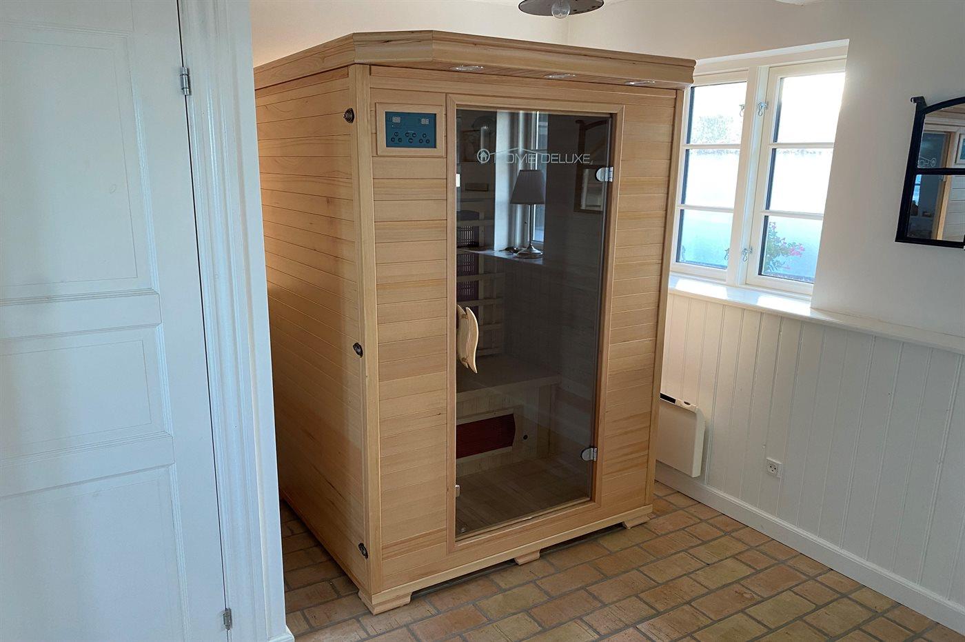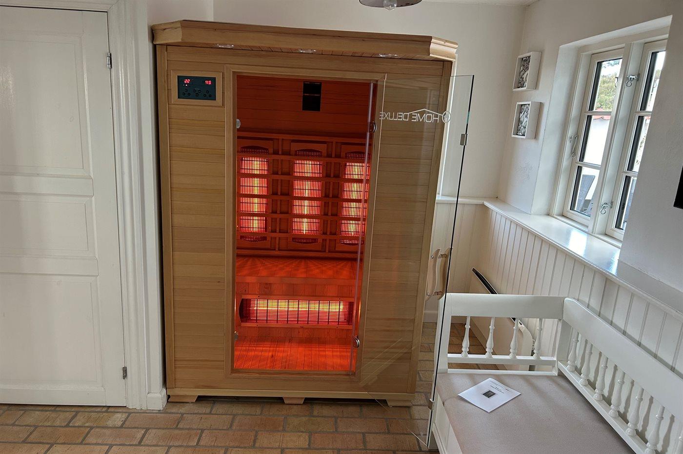 Der er 1 badeværelse med bruseniche og 1 toilet. I den infrarøde sauna er der mulighed for afslapning.
