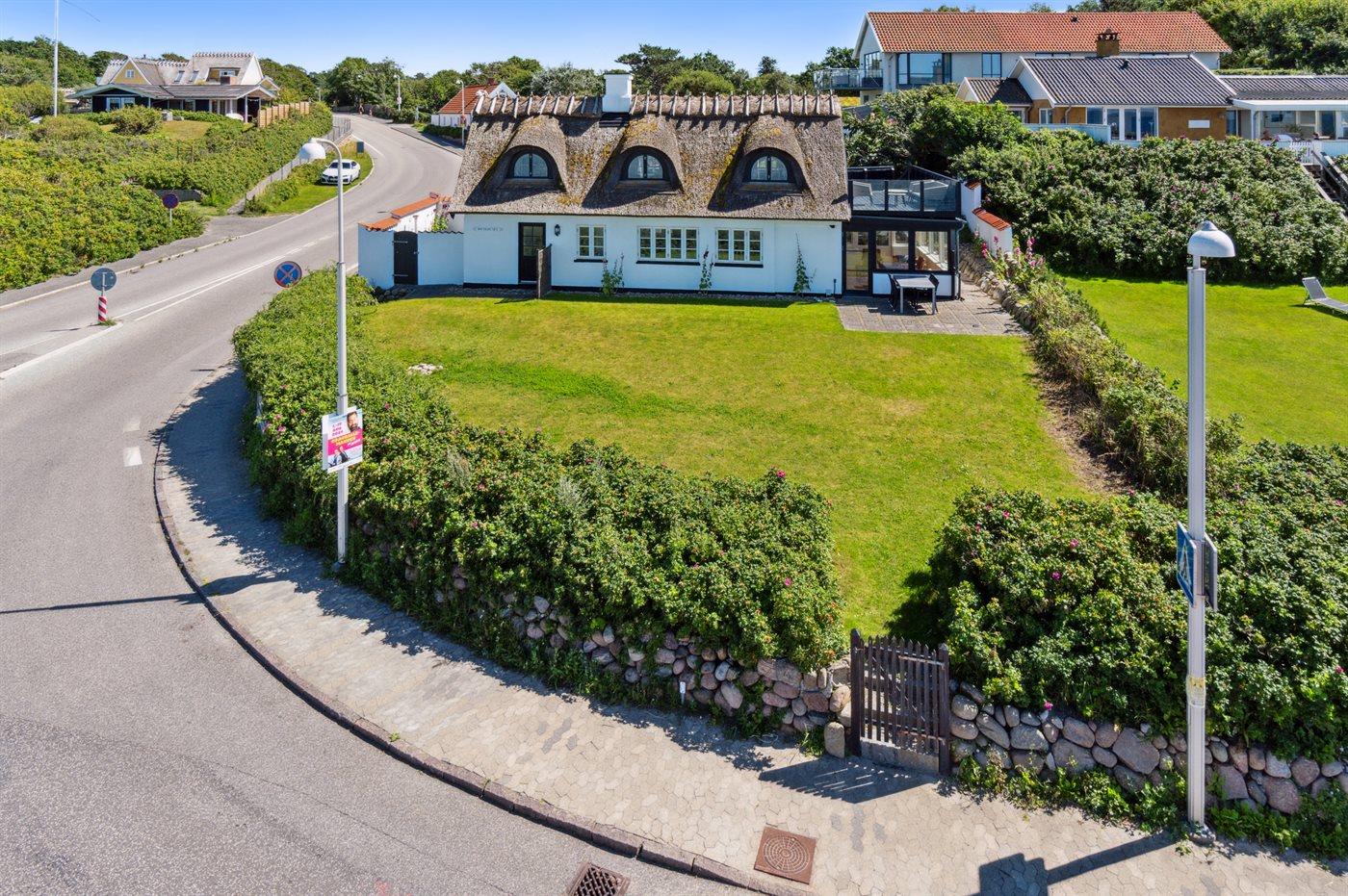 Ferieboligen er beliggende på en 614 m² stor naturgrund. Grunden er indhegnet. Der er 20 m til havet. Nærmeste forretning er beliggende i en afstand af 300 m. Til ferieboligen hører åbent terrasseareal. Udgang til altan. Grill til rådighed. Parkering ved ferieboligen.