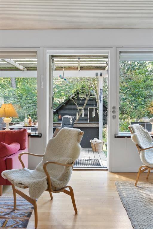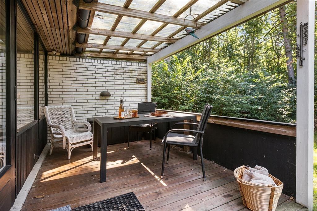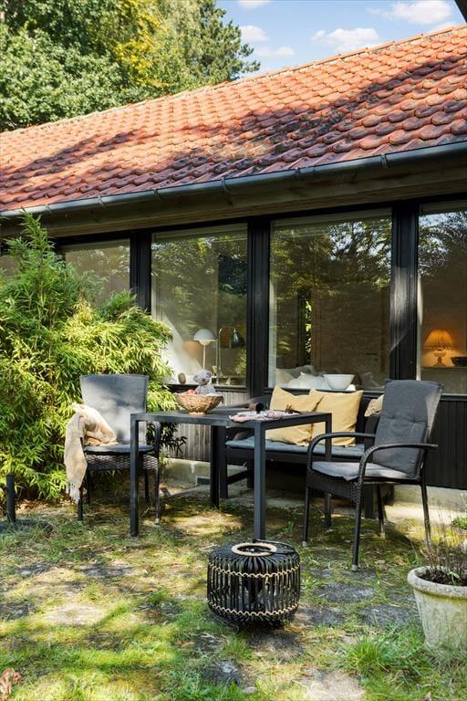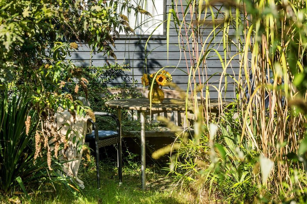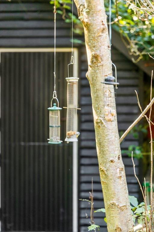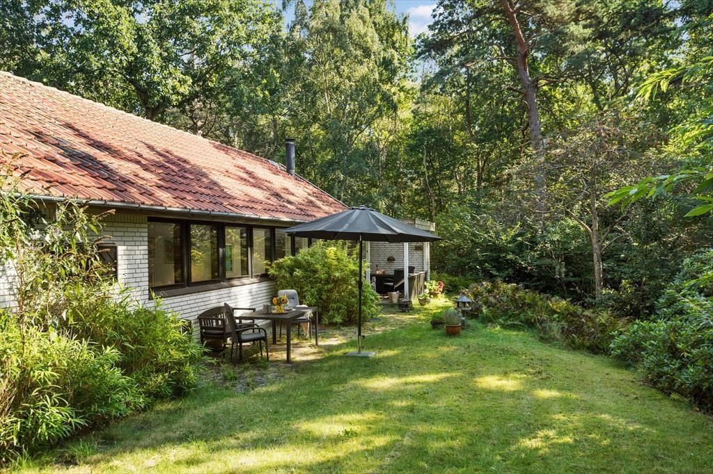 Udenfor venter en fredfyldt oase. Sommerhuset ligger på en privat grund, der er et sandt paradis for naturens dyreliv. Haven besøges flittigt af både rådyr, dompapper, spætmejser og spætten, hvilket skaber en følelse af nærhed til naturen, hvor man kan slappe af og opleve det lokale dyreliv. Den store terrasse er ideel til udendørs spisning og afslapning, hvor man kan nyde roen og naturens lyde.