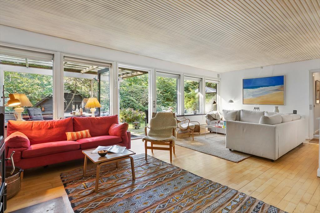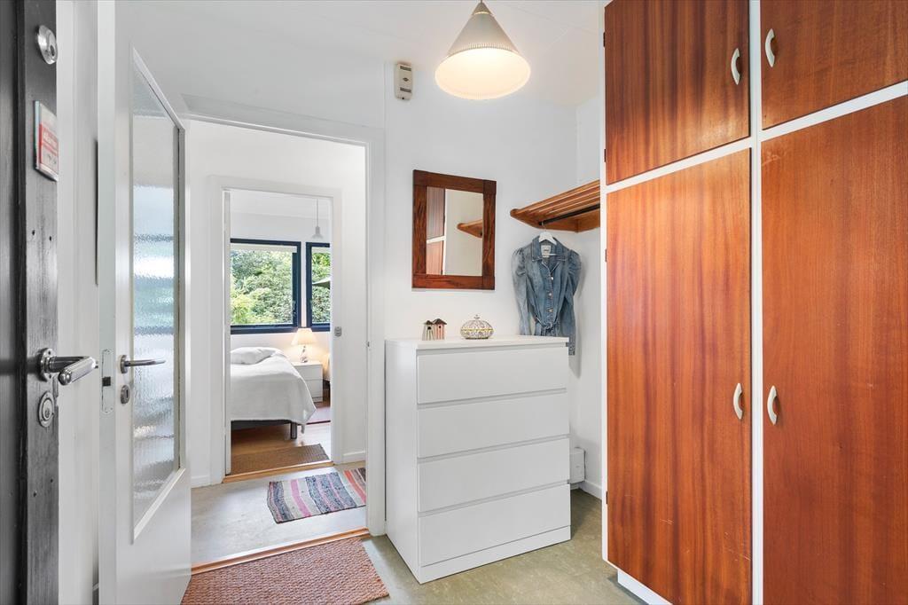 Sommerhuset er som en skjult perle af ren afslapning og feriestemning. Dets lyse og smagfulde indretning indfanger øjeblikkeligt følelsen af ro og hygge. Det er som om, tiden står stille, når man træder ind i den rummelige stue, hvor panoramavinduerne omfavner naturens skønhed og fylder rummet med varmt, naturligt lys. En brændeovn spreder en dejlig varme og skaber den perfekte stemning for at slappe af på kølige aftener .Køkkenet er veludstyret med alt nødvendigt til madlavning, og badeværelset er moderne og funktionelt. Med sine tre velindrettede soveværelser tilbyder sommerhuset masser af plads til hele familien.
