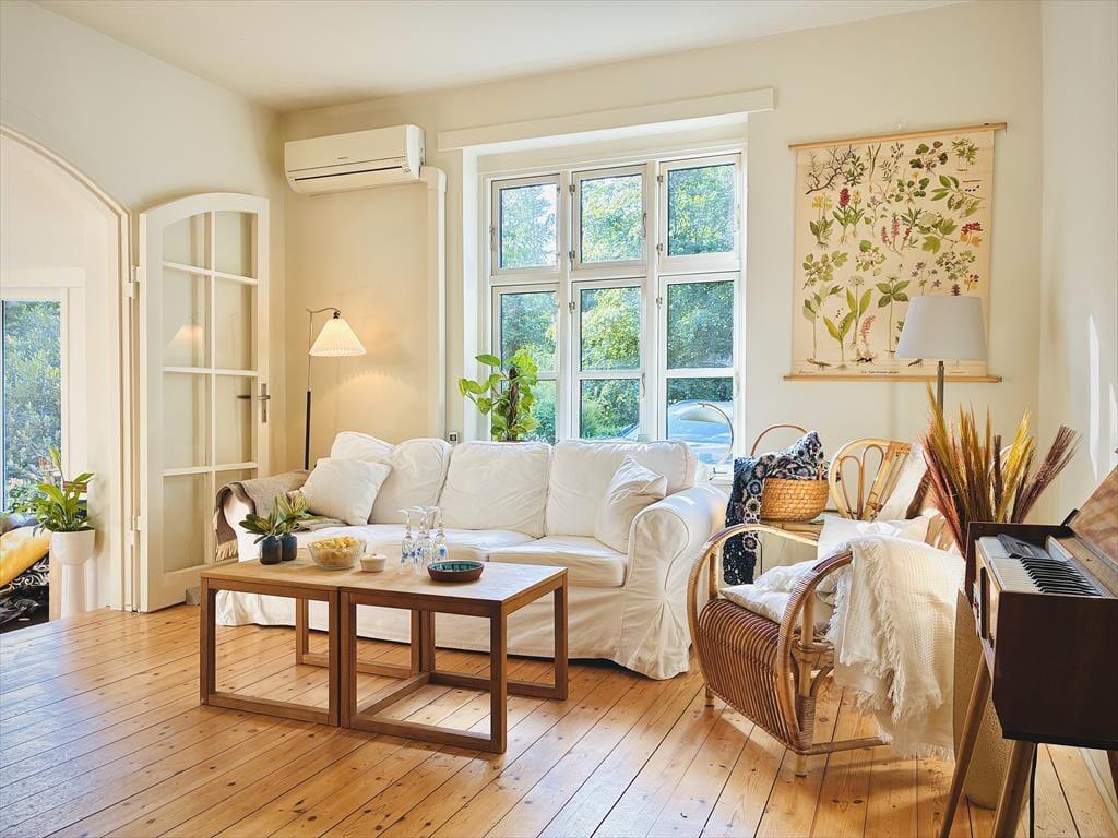 Indenfor venter en stilfuld og gennemført indretning, hvor original karakter og nutidige løsninger smelter sammen i skøn harmoni. Her er tænkt over hver en detalje – fra det smukke gulv til de eksklusive armaturer – så du straks føler dig hjemme i rolige og luksuriøse omgivelser. Huset er indrettet med komfort for øje, og de hyggelige opholdsrum indbyder til både nærvær og afslapning. Her kan man samle familien om gode måltider, spille brætspil, eller bare læne sig tilbage og nyde den særlige atmosfære, som kun et gennemtænkt sommerhus kan skabe.