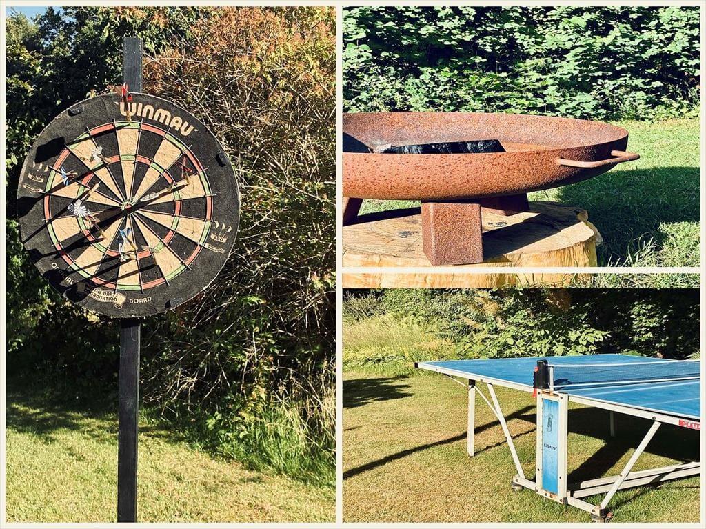 På den store, ugenerede grund – blot 200 meter fra stranden – er der skabt en oase af fred og nydelse. Haven er indrettet med maksimal fokus på hygge og oplevelser for både store og små. Her finder I smuk udebelysning, der forlænger sommeraftenerne, og en række udendørs spil og aktiviteter: dart, bordtennis og stigegolf. Rundt om i haven er der skabt små, stemningsfulde kroge – som den hemmelige kyssebænk og en hængekøje gemt væk bag buskene, hvor far kan snige sig til en morfar.