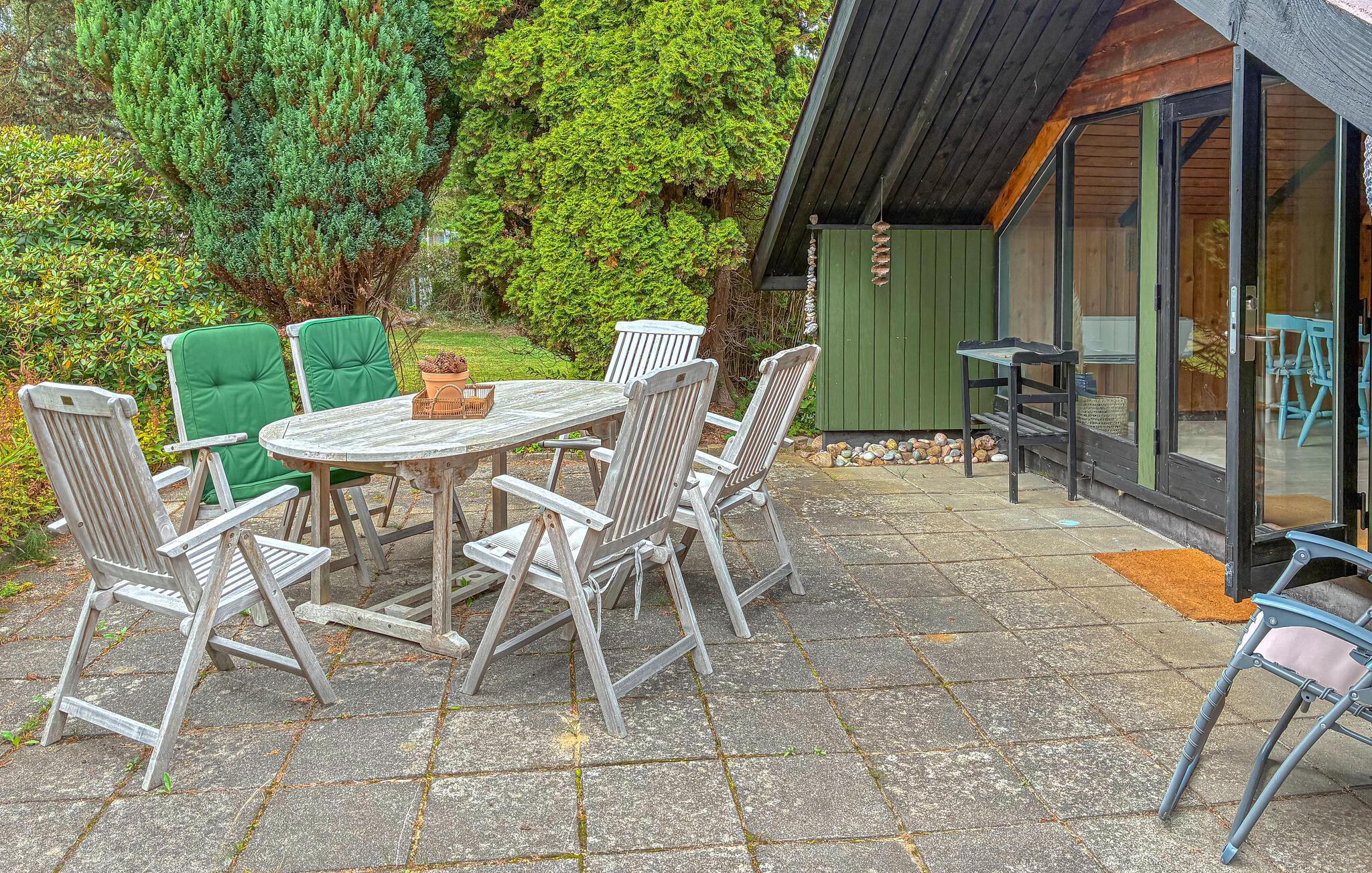 Udenfor inviterer terrassen jer til at tilbringe rolige timer udendørs. Sæt jer ned i den friske luft, spis under åben himmel eller læs en god bog i skyggen af ??træerne. Den store have med græsplæne og bålplads tilbyder masser af plads til leg og afslapning. Her kan I nyde jeres ferie i en afslappet atmosfære og lade dagen slutte fredeligt.