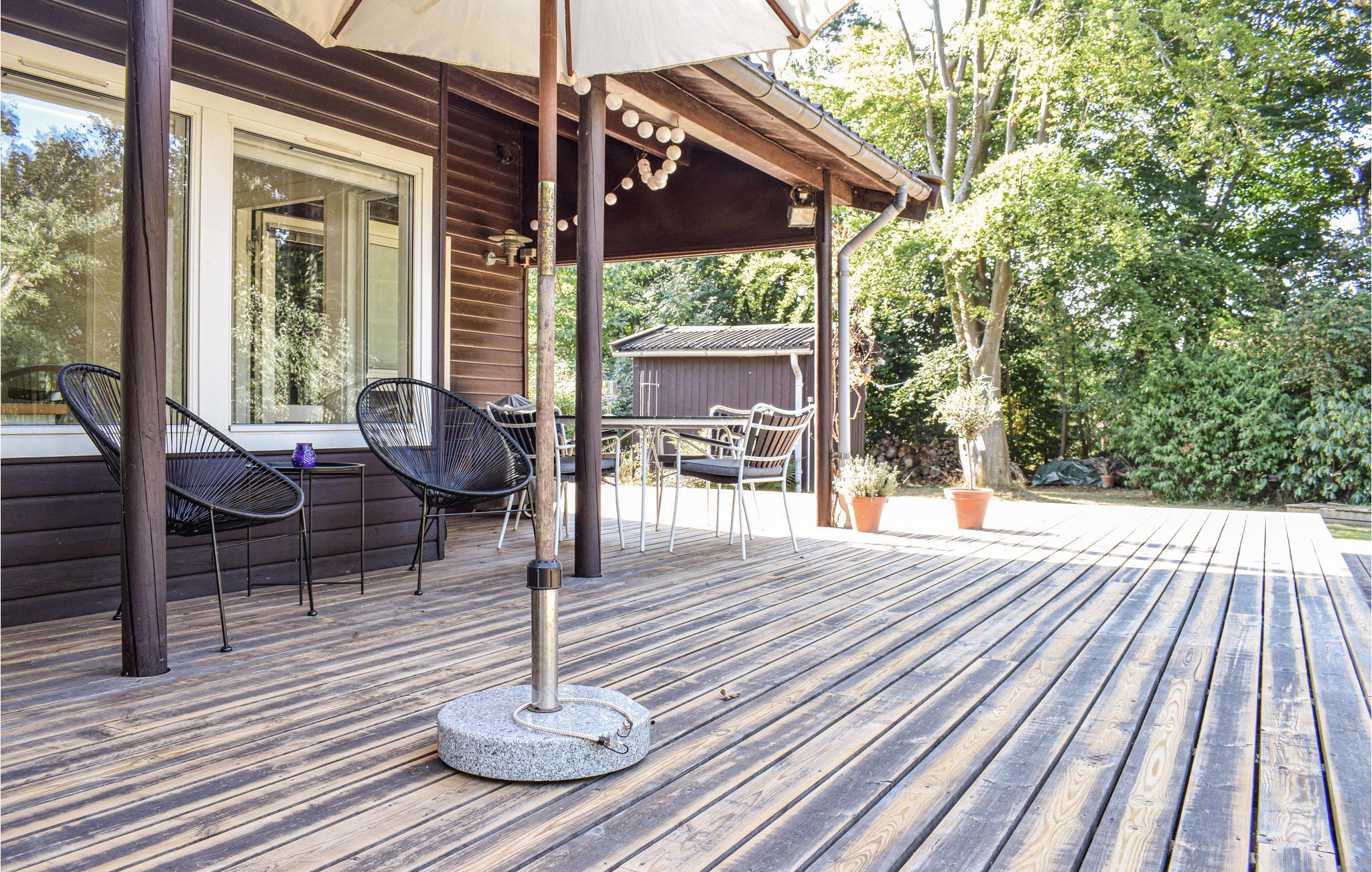 Dejligt feriehus med god plads til boldspil i haven samt grill på den store, delvis overdækkede terrasse.