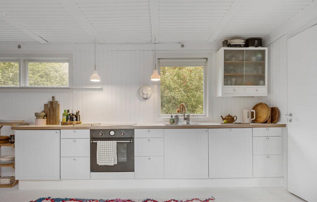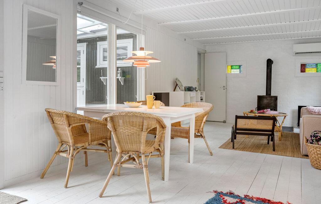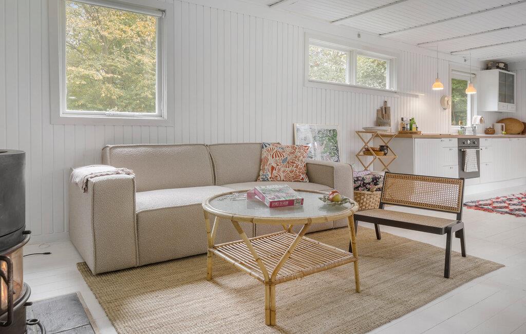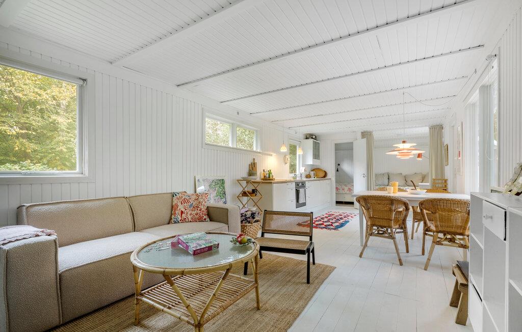 Jeres charmerende feriehus i den populære badeby Rågeleje tilbyder jer den ideelle base for afslappede dage. Med sin hyggelige, åbne indretning og veludstyrede køkken er det perfekt til fælles madlavningsaftener med familien. Start morgenen med en omfattende morgenmad, og planlæg dagens aktiviteter. Den behagelige sofakrog indbyder til afslapning. Her kan I læse en god bog ved den knitrende brændeovn eller spille kort med jeres børn.