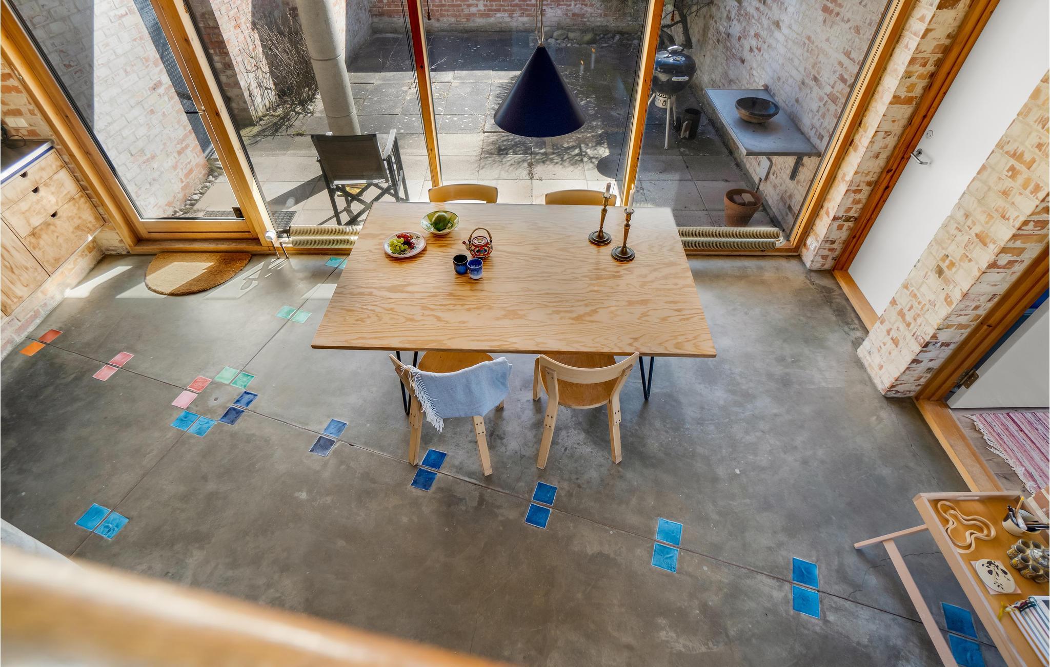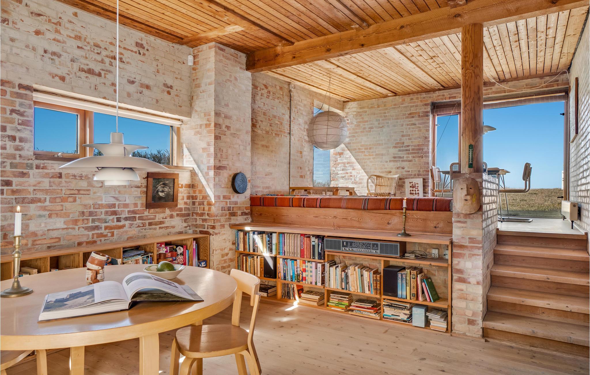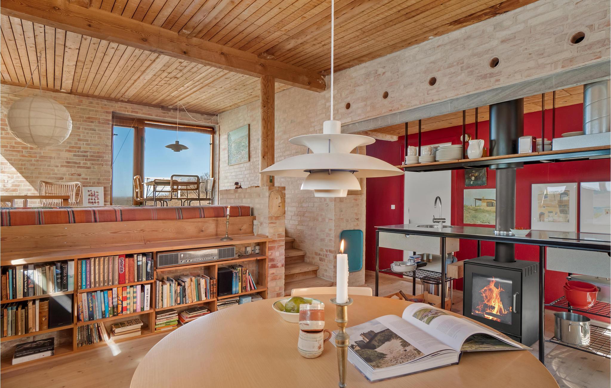 Der er en helt særlig stemning i dette spændende hus, som emmer af kvalitet og flotte arkitektoniske detaljer, så her får I en fantastisk base til jeres feriedage. Rå murstensvægge, plankegulve samt unikke indretningsløsninger med indbygget køkken, brændeovn og trappe er bare nogle af husets mange originale træk. Her får I en enestående chance for at bo i et unikt stykke dansk kulturarv med sjæl og tidløst arkitektonisk præg, som skaber en helt særlig livskvalitet. Efter en lang dag på farten kan I sætte jer til rette med den smukke udsigt foran jer samt en god film eller brætspil, mens ilden buldrer i brændeovnen.