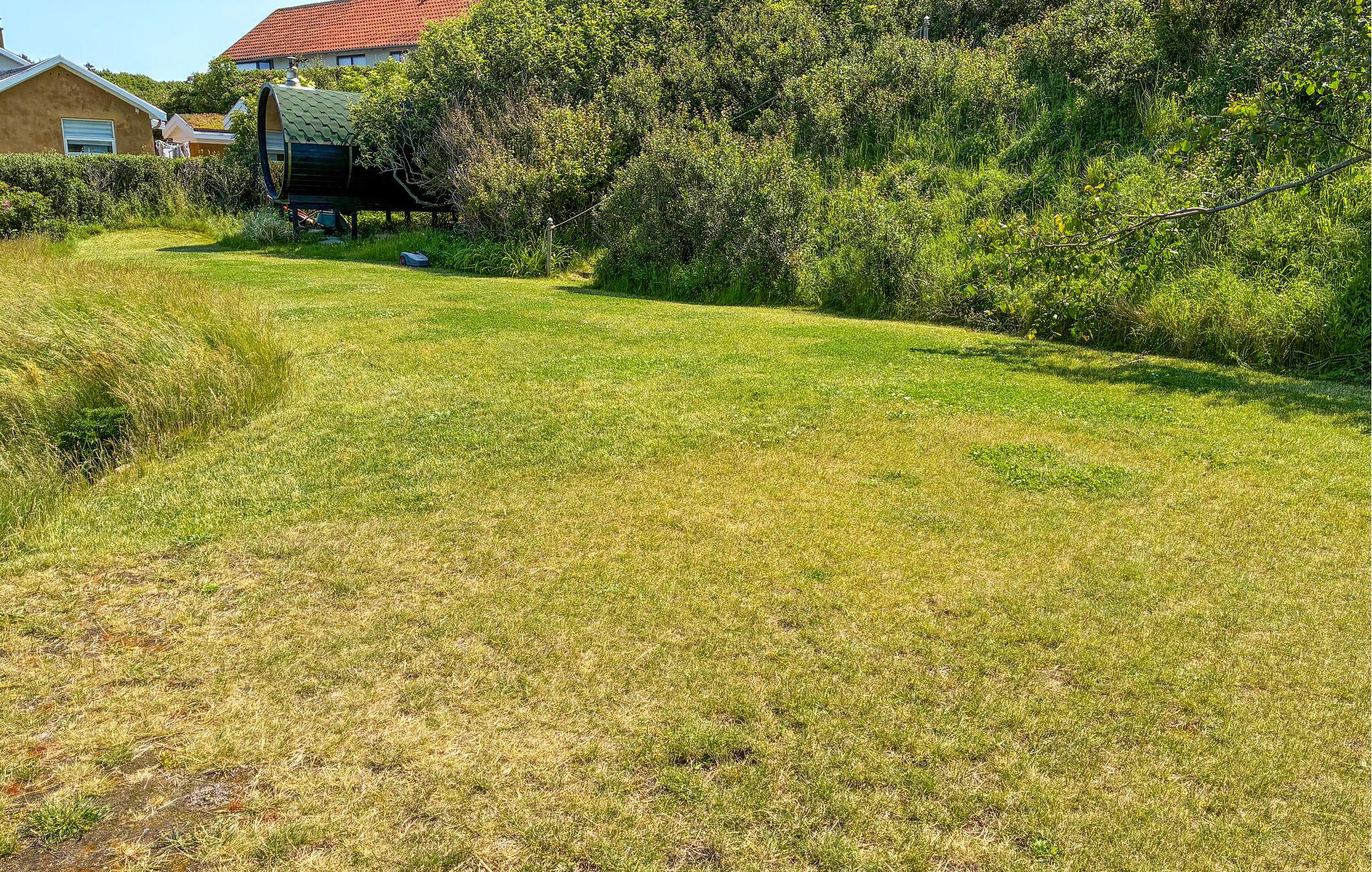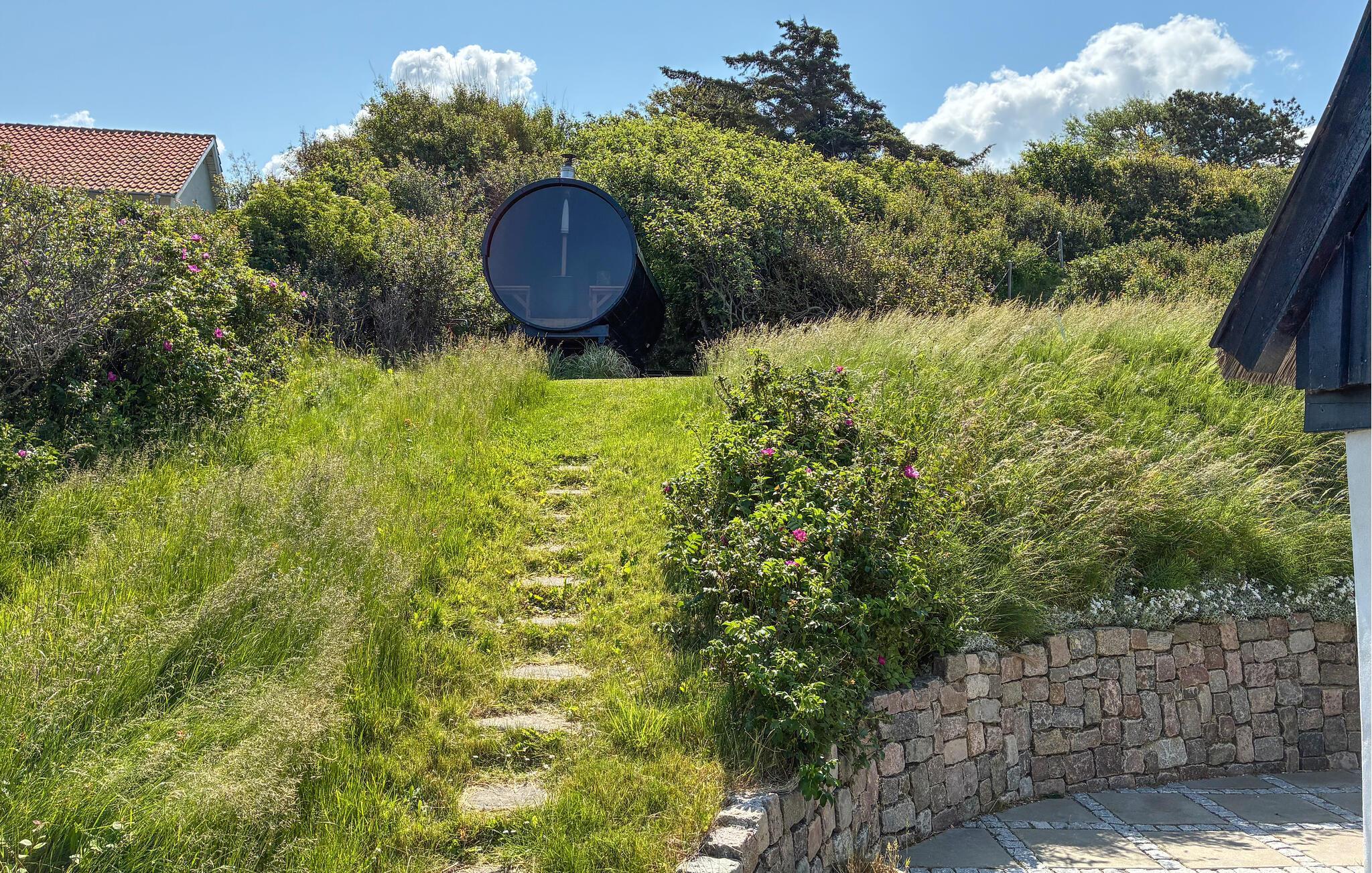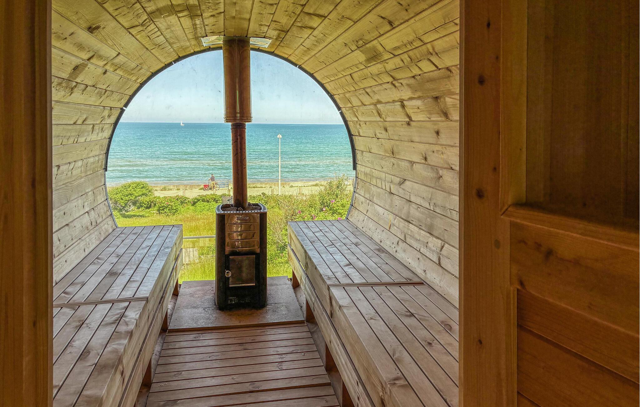 Dette feriehus giver jer direkte havudsigt, en udendørs sauna og behagelige faciliteter.