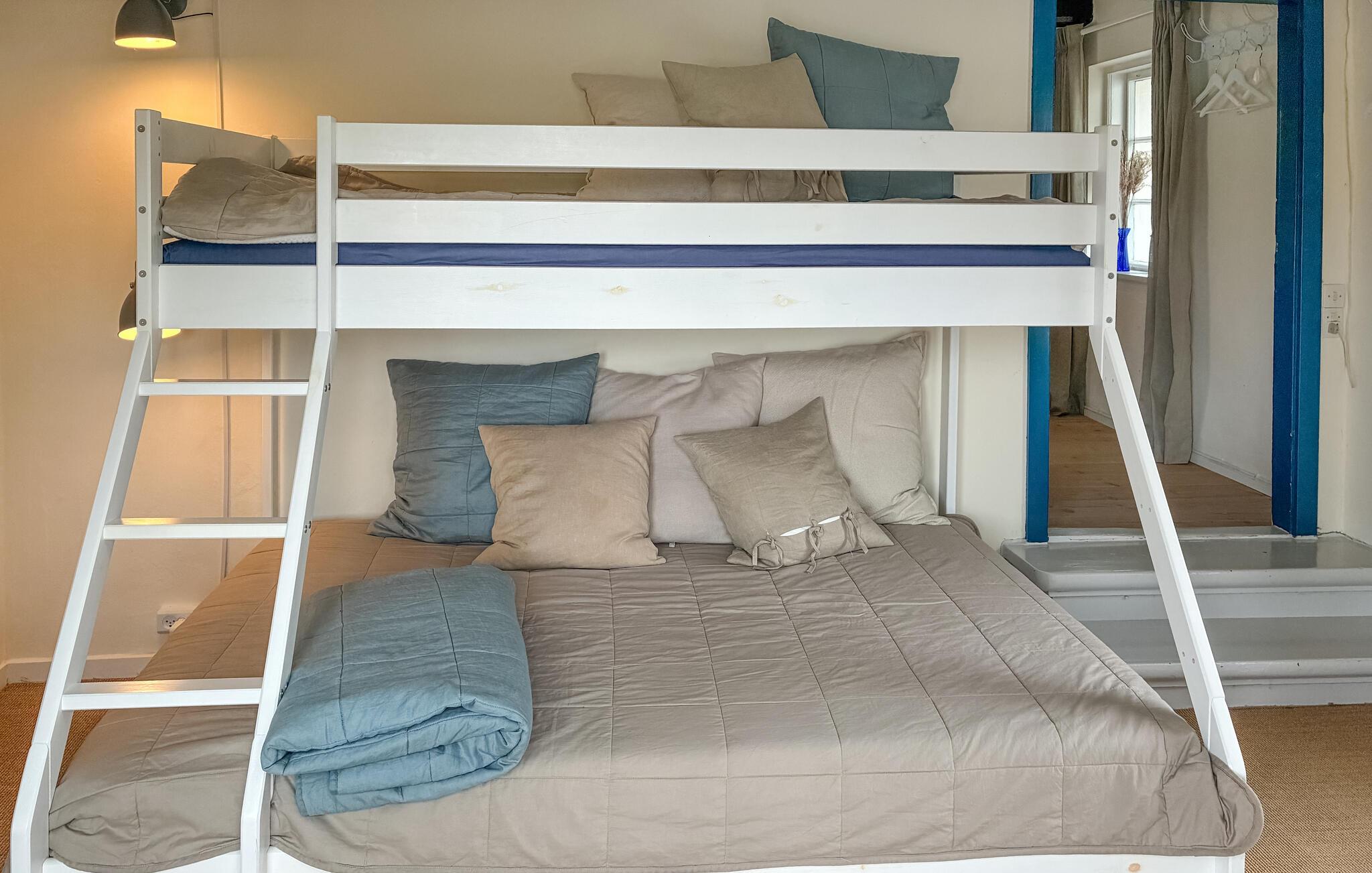 Soveværelse (nr. 2) - 1 Soveplads. (Enkeltseng(e)). 2 Sovepladser. (Dobbeltseng(e)). 1 Soveplads. (Etageseng(e)).