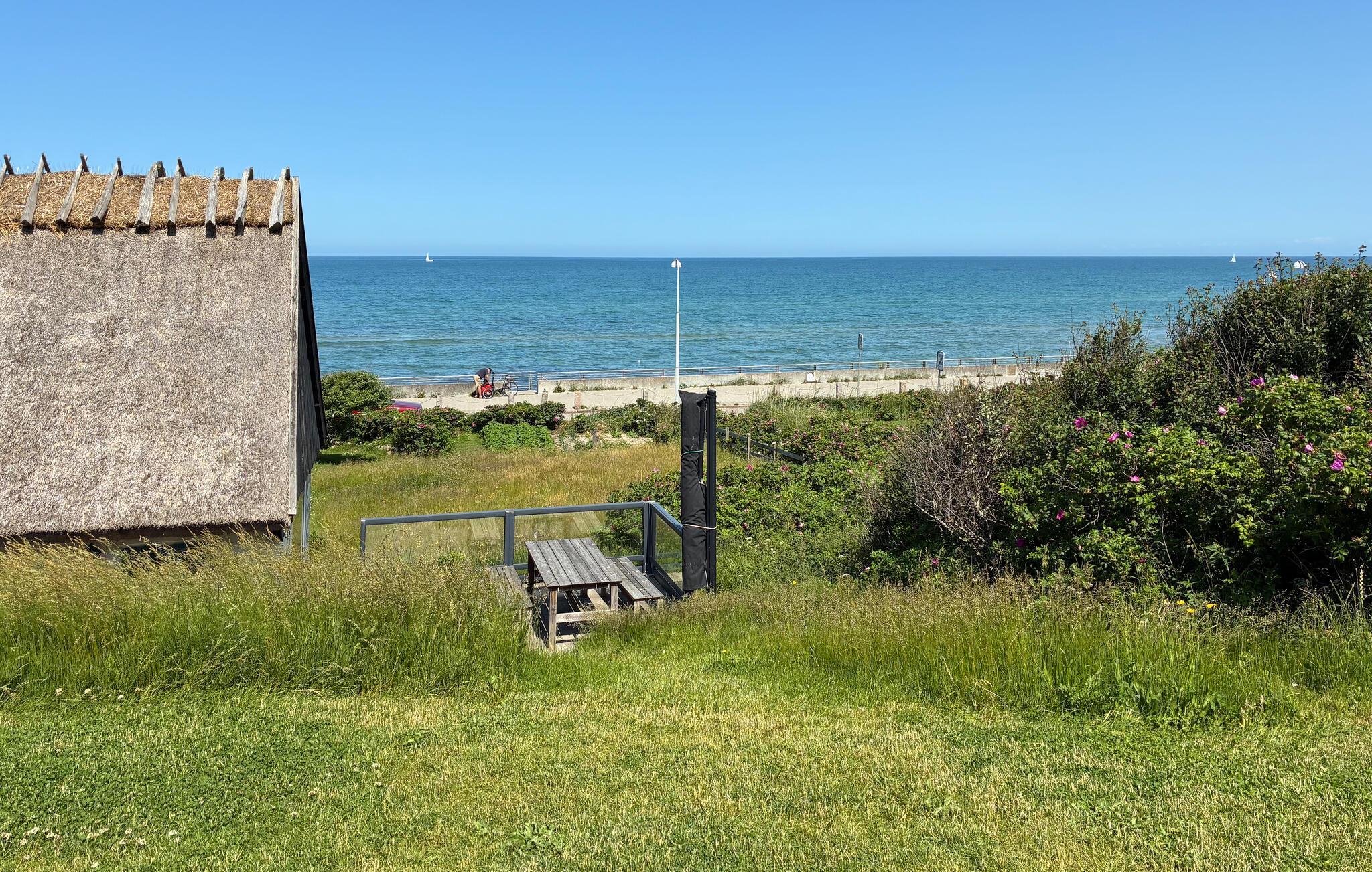 Charmerende stråtagshus med panoramaudsigt, sauna og direkte adgang til Rågeleje Strand.