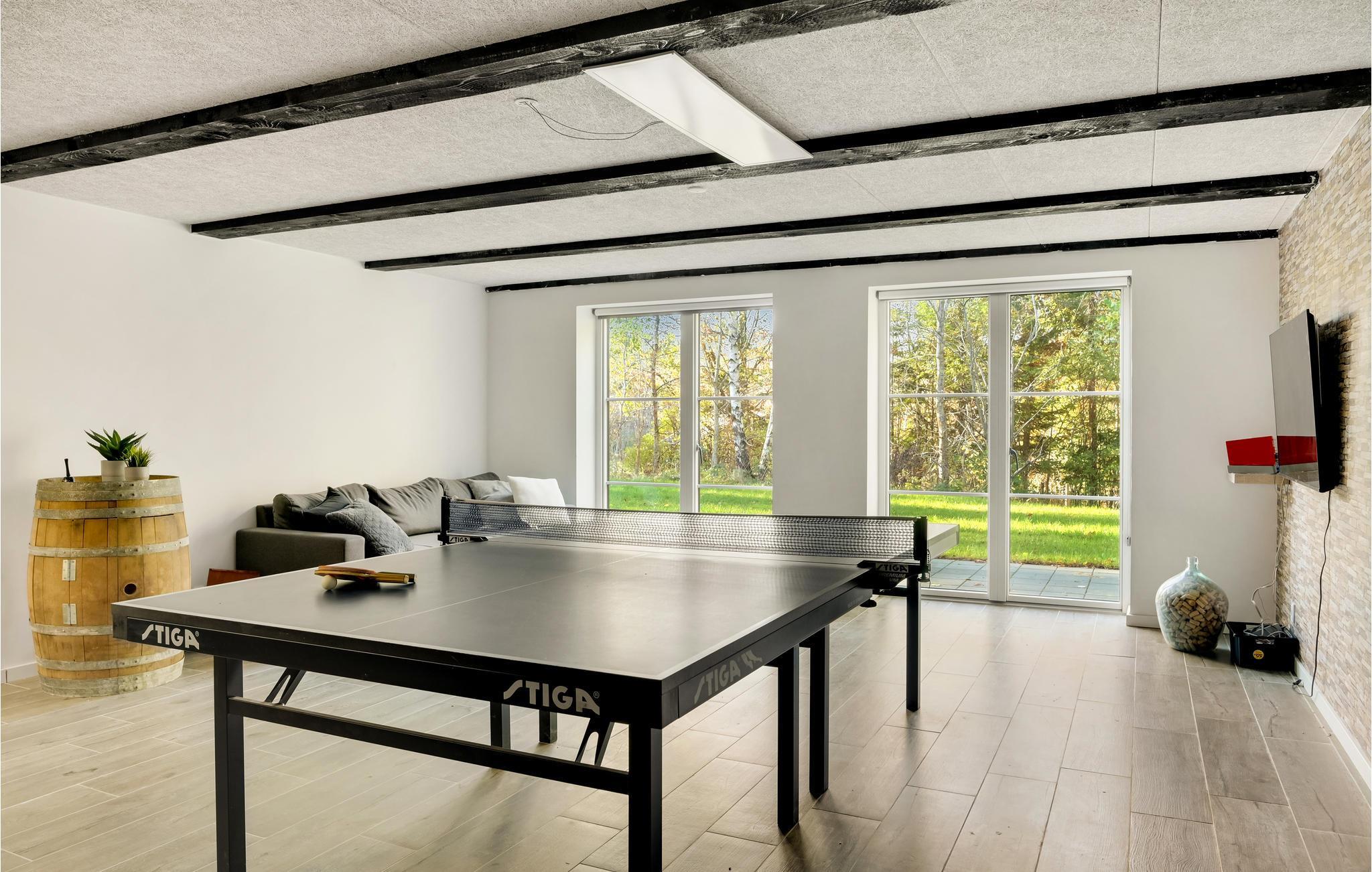 Rummeligt, familievenligt feriehus med bordtennisbord og beliggenhed tæt på sandstranden.