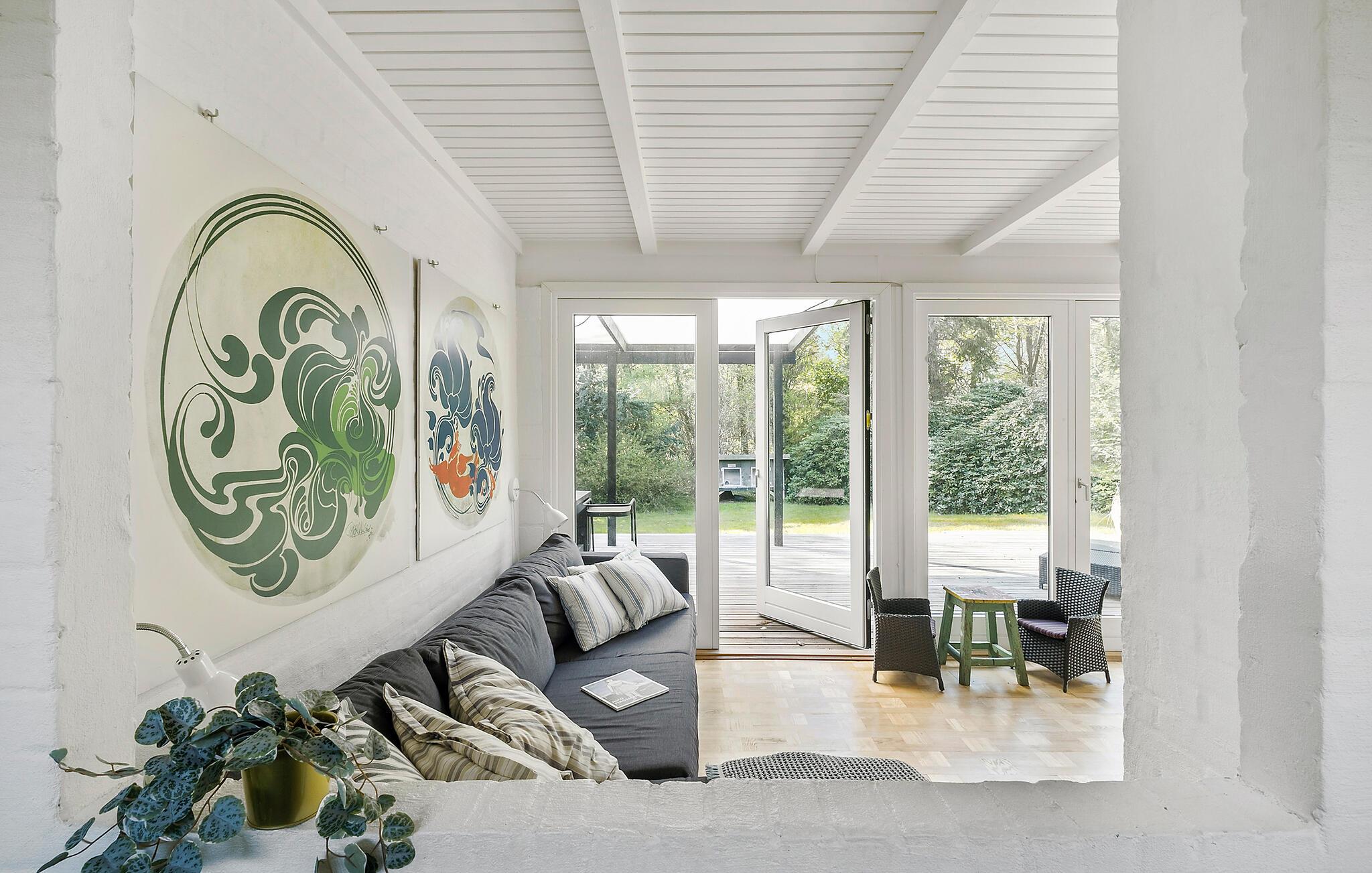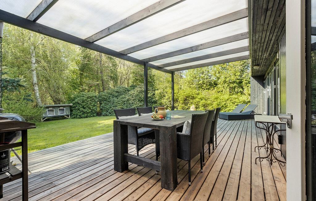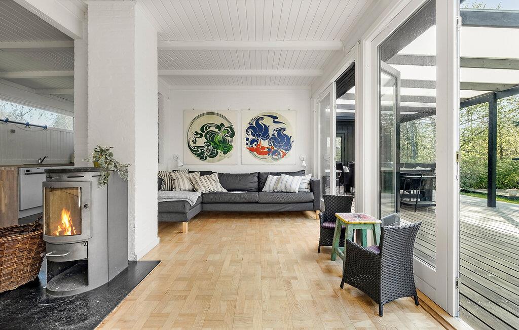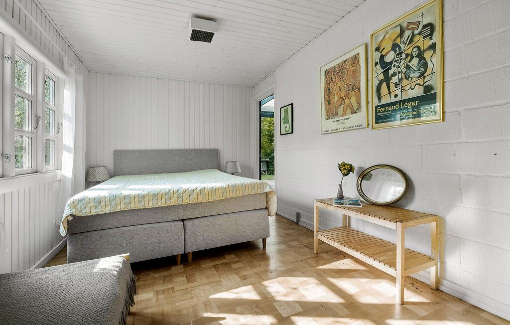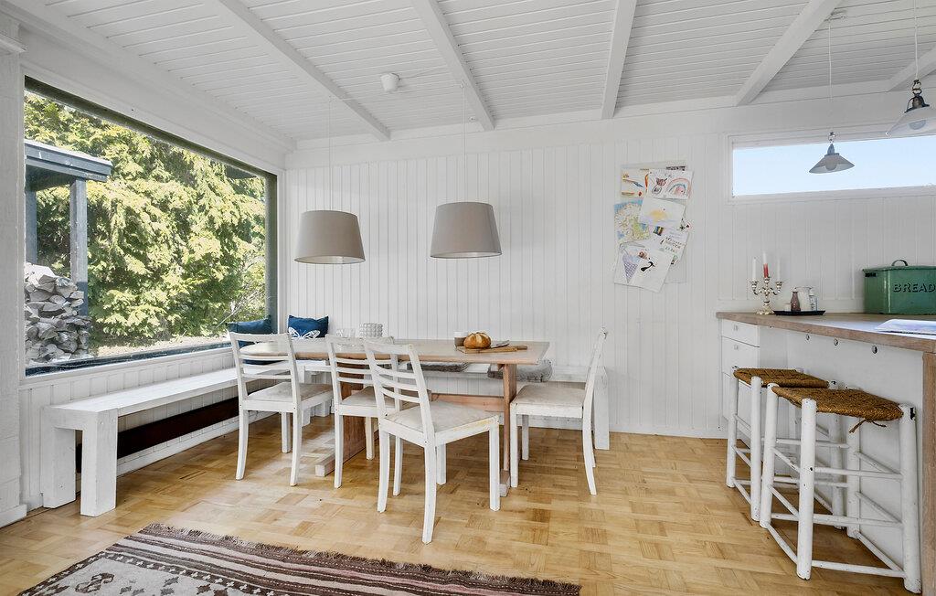 Tag familien under armen og rejs til Nordsjælland, hvor I en kort gåtur fra Rågeleje Strand får base i denne indbydende bungalow. Husets indre får flere flotte lysindfald gennem de store vinduespartier, og interiøret fremtræder pænt og hjemligt med fin kunst på væggene og en brændeovn, der giver varme og en hyggelig knitren på en gråvejrsdag. Gør madlavningen til et sjovt fællesprojekt i det veludstyrede køkken og nyd måltiderne på den delvist overdækkede terrasse med udsigt til haven.