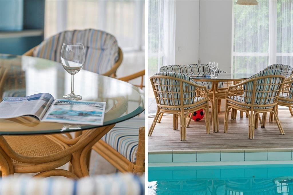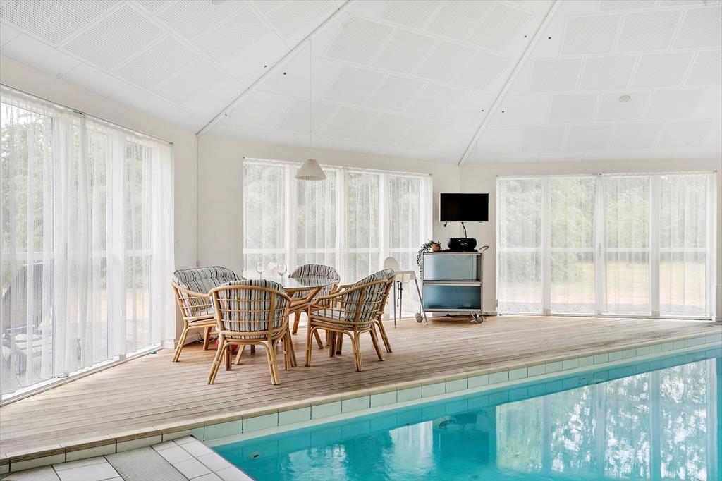 Træd ind i dette skønne kvalitetsferiehus, hvor der er plads til hele familien – ja, også bedsteforældrene kan være med, og selvfølgelig jeres pelsklædte venner. Det åbne køkken i forbindelse med stue og spiseafdeling skaber de perfekte rammer for hyggeligt samvær på tværs af madlavning, spil og afslapning. For familiens vandhunde byder huset på en stor pool, hvor der er masser af plads til leg og svømmeture. Poolområdet har en god akustik, og efterfølgende kan I slappe helt af i husets dejlige sauna og lade dagen glide stille afsted.