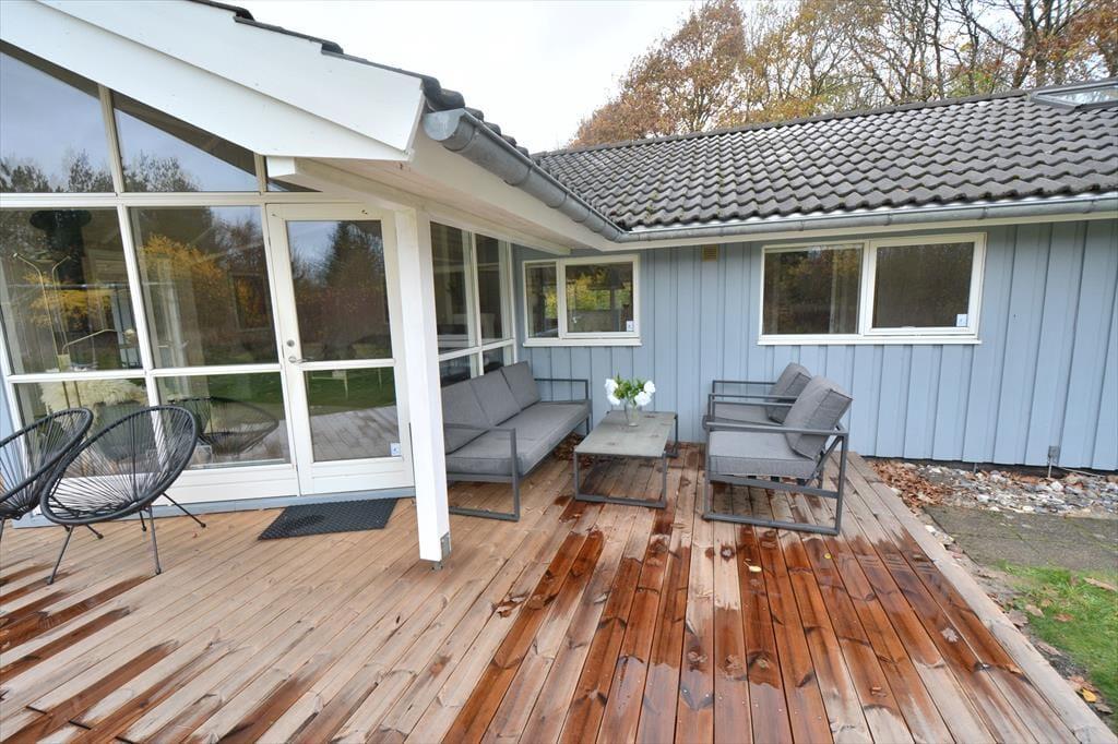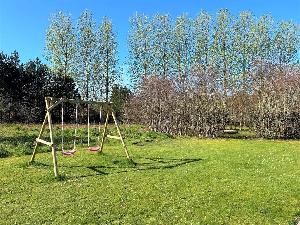 Huset ligger på en stor, naturpræget grund med masser af beplantning, så I kan nyde privatliv og fred fra naboer. Den store græsplæne indbyder til boldspil og leg for hele familien, og gyngestativet vil glæde de yngste. Saml familien omkring det hyggelige bålsted, hvor I kan bage snobrød, pandekager eller bare nyde flammernes varme. Naturen omkring huset byder også på gode muligheder for at spotte rå- og dåvildt direkte fra grunden.