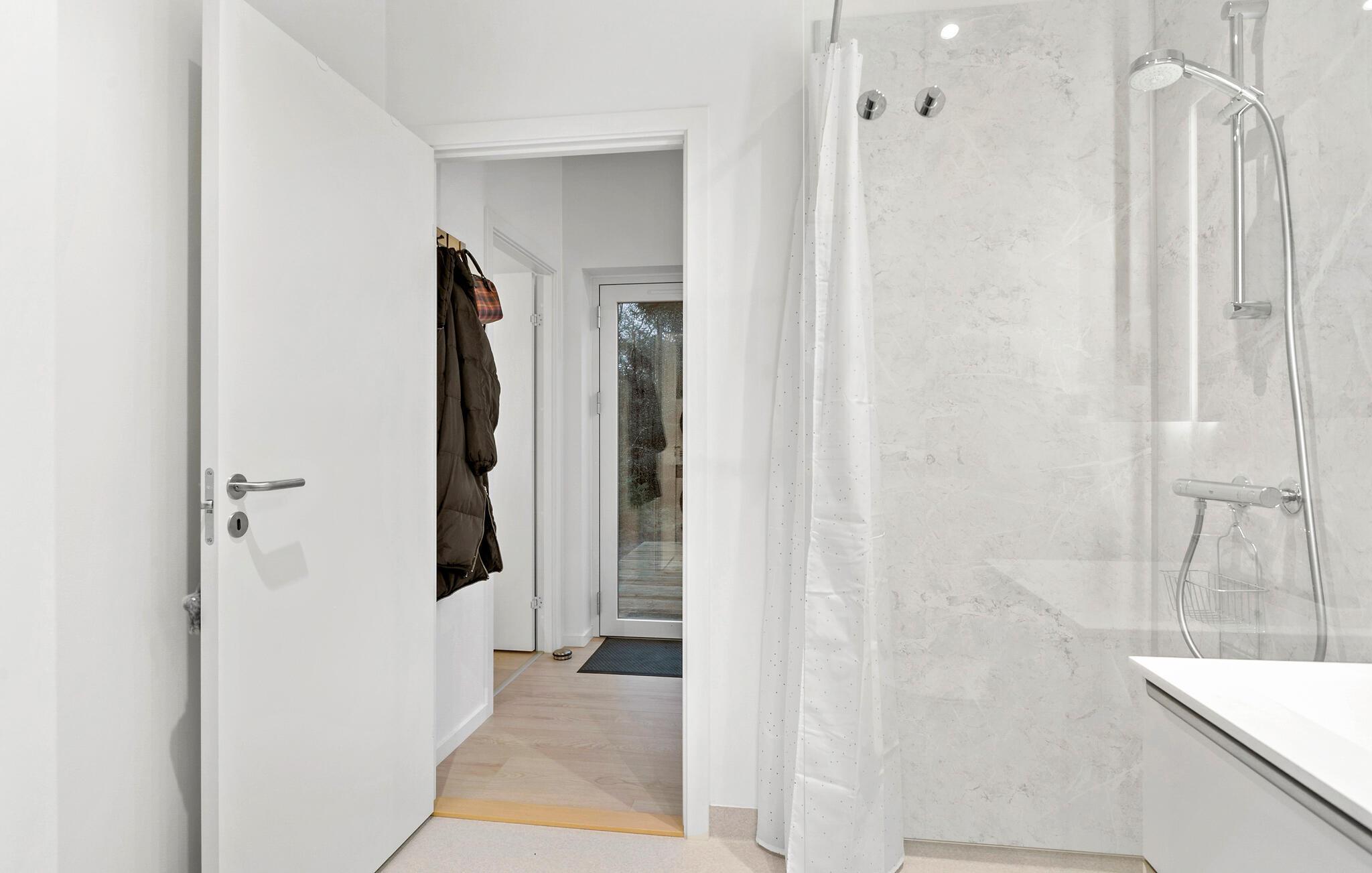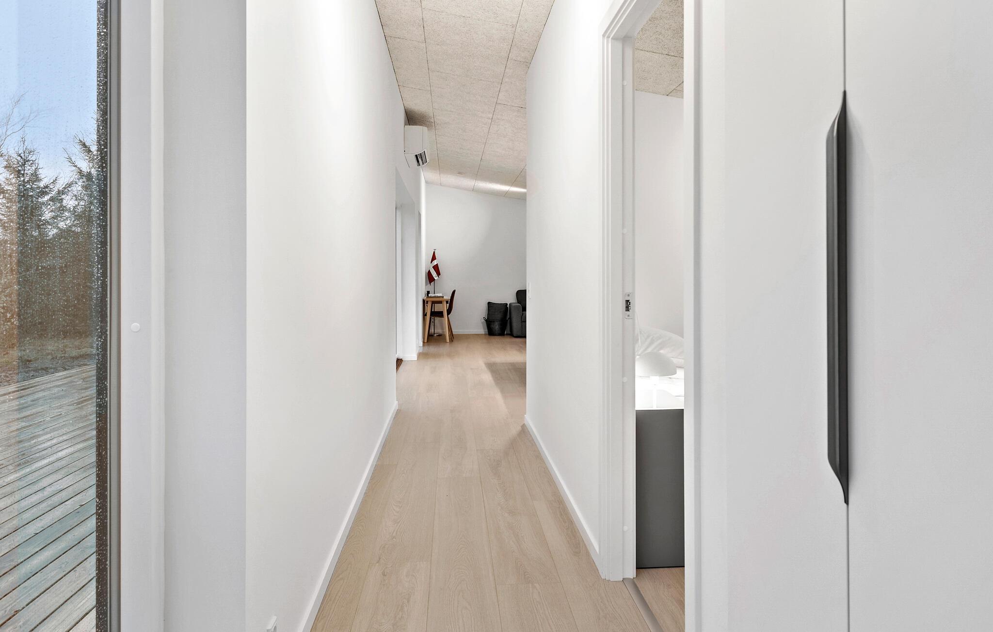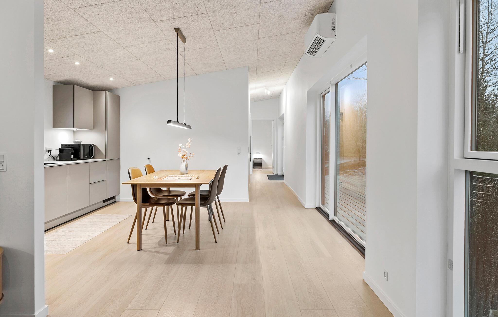Oplev en særlig form for pause i jeres stilfulde sommerhus i Råsted, som tilbyder jer alt, hvad I skal bruge til en afslappende ferie midt i et idyllisk landskab. Nyd harmonien af ??komfort og natur i et miljø, der lægger op til at slappe af. Huset er noget særligt med moderne, minimalistisk indretning. Store vinduespartier giver masser af lys og en vidunderlig udsigt over landskabet. Slap af i den hyggelige opholdsstue eller tilbered jeres yndlingsretter i køkkenet. Det åbne spiseområde giver plads til sociale aftener, uanset om man spiller brætspil eller spiser middag sammen. Den rene, skandinaviske æstetik skaber en varm, indbydende atmosfære.