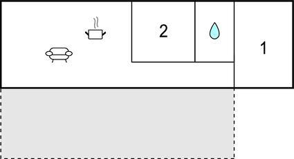 Opholdsstue/køkken - 2 Sovepladser. (Sofa, madras eller lignende).