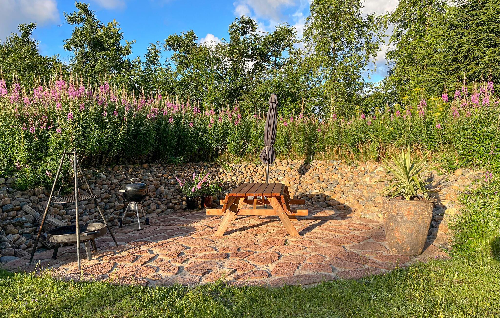 Idyllisk sommerhus på en stor naturgrund.