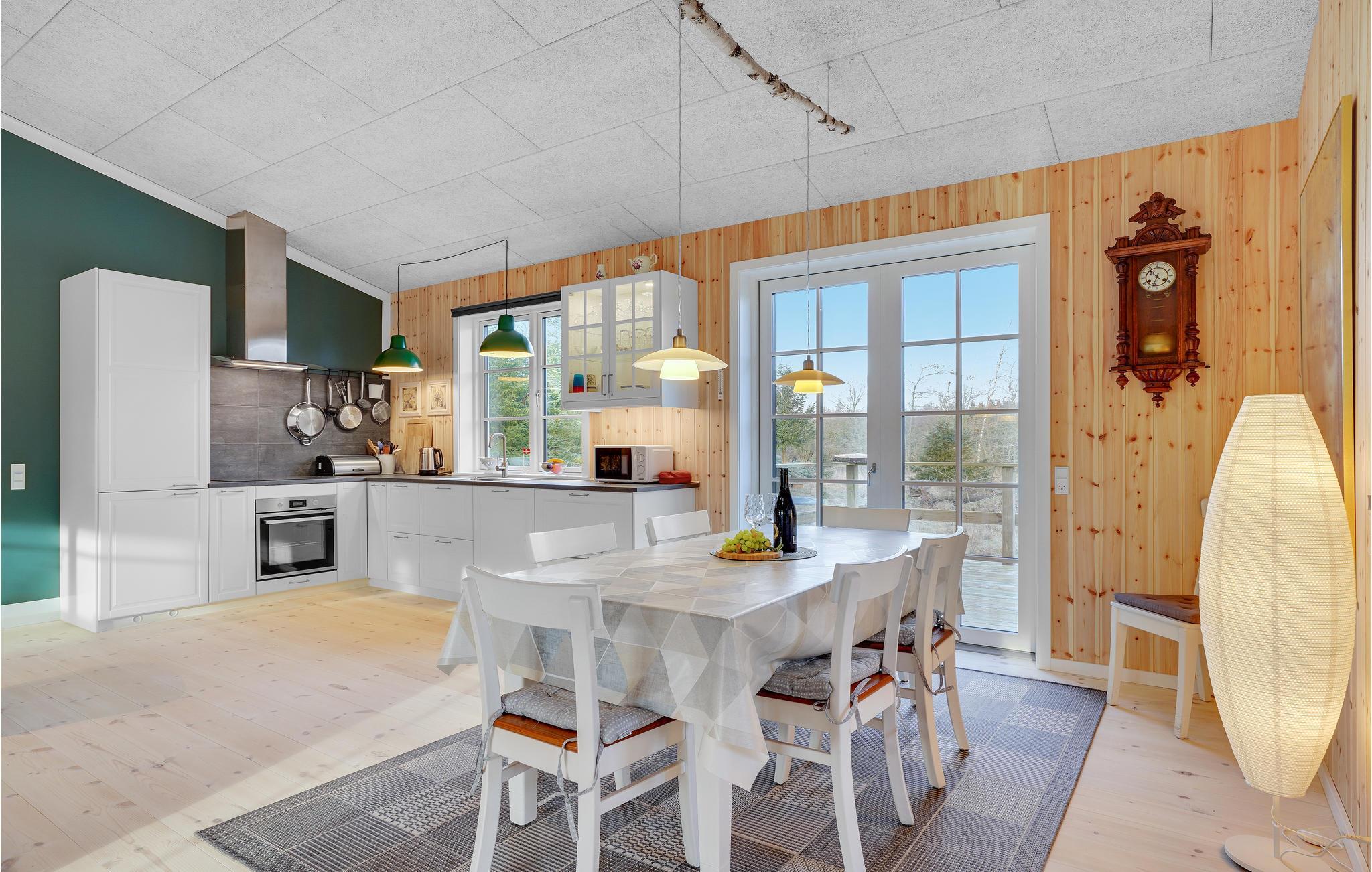 Dette feriehus, der er indrettet og dekoreret med kærlighed, byder jer velkommen til en stor naturgrund. Inde i huset kan I forvente en rigtig hyggelig atmosfære med masser af fine detaljer. Husets hjerte er opholdsstuen og spisestuen med åbent køkken. Her kan I slappe af i sofaen om aftenen og se en film eller samles ved spisebordet til dagens måltider.