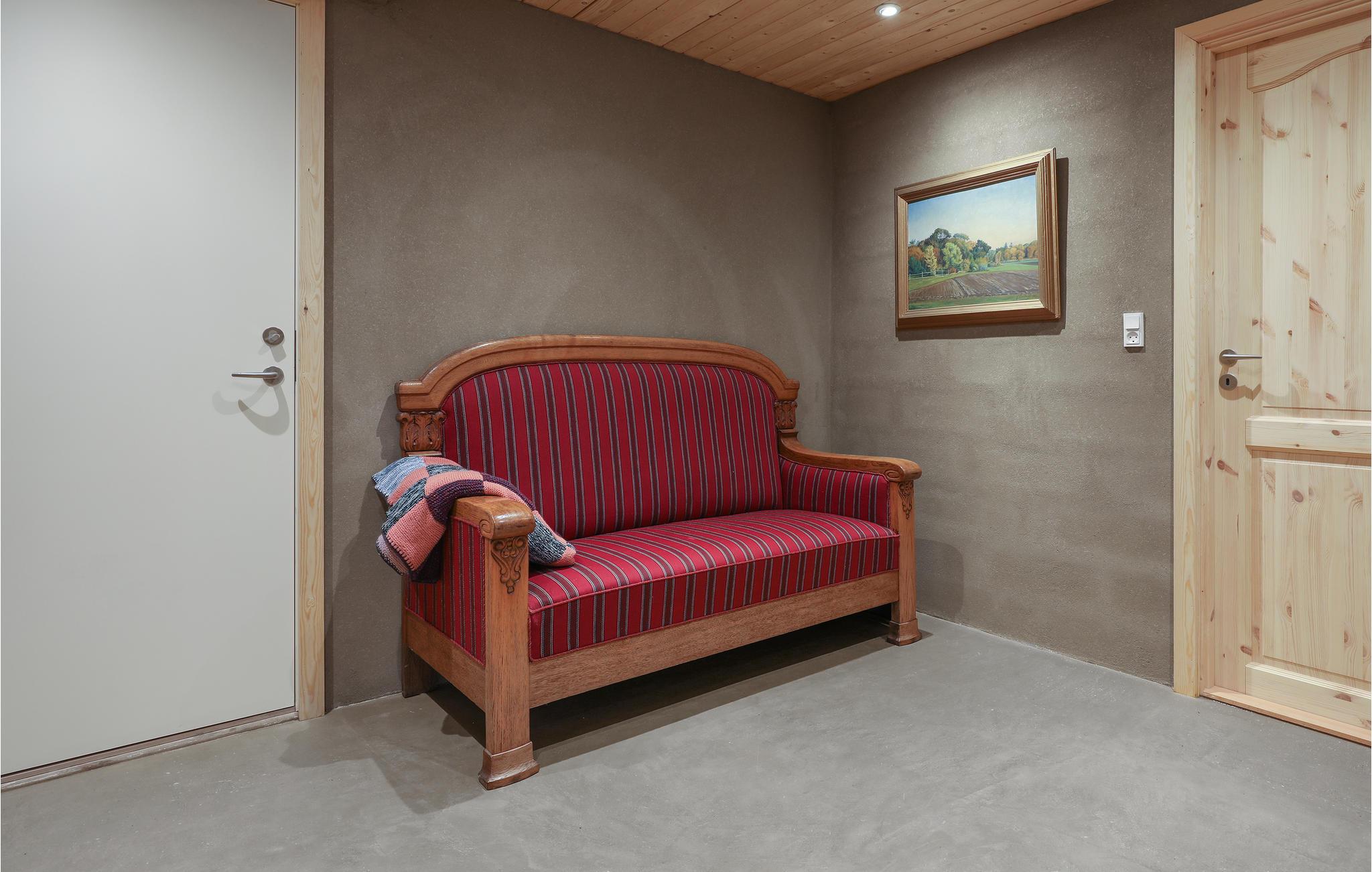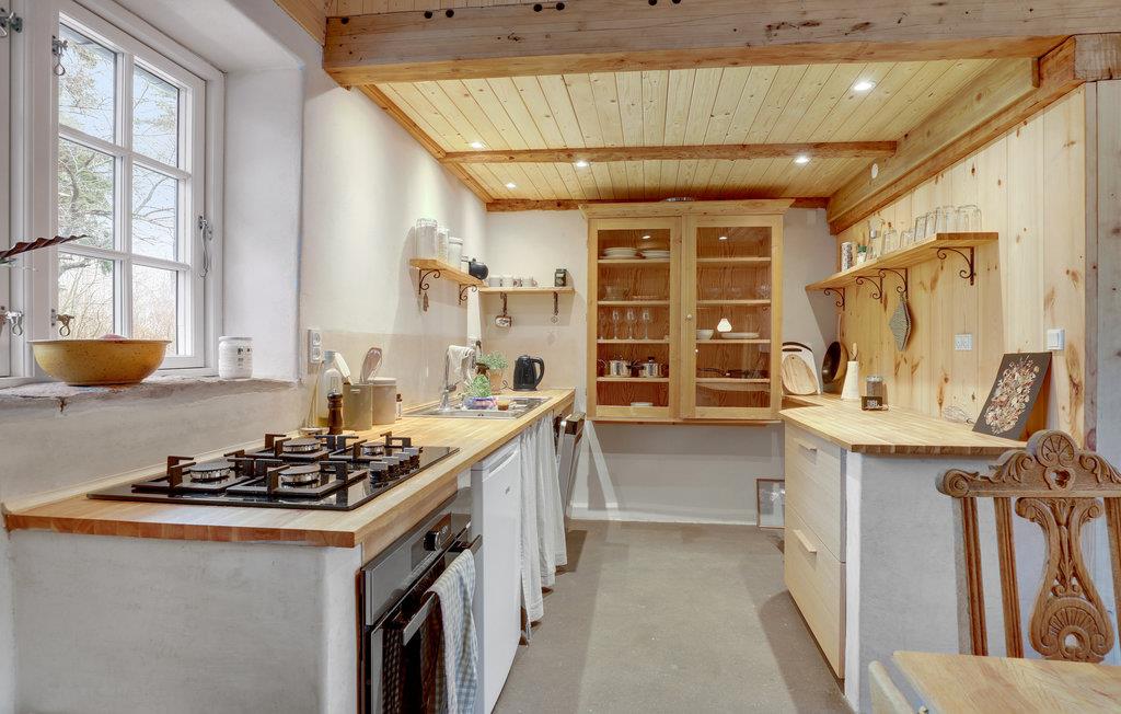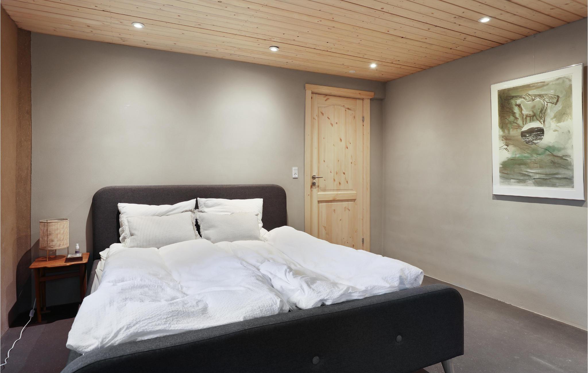 Velkommen til denne dejlige feriebolig udenfor Rø, hvor I kommer til at bo i et roligt, naturskønt område, omgivet af økologiske marker. Lejligheden er bygget i bæredygtige materialer, og der er kælet for indretningen, bl.a. med et flot bjælkeloft, et hyggeligt, veludstyret køkken og flere gode kroge. Brændeovnen og gulvvarmen sørger for varme og stemningsfuld atmosfære, mens I hygger jer med kortspil, ferielæsning og gode samtaler.