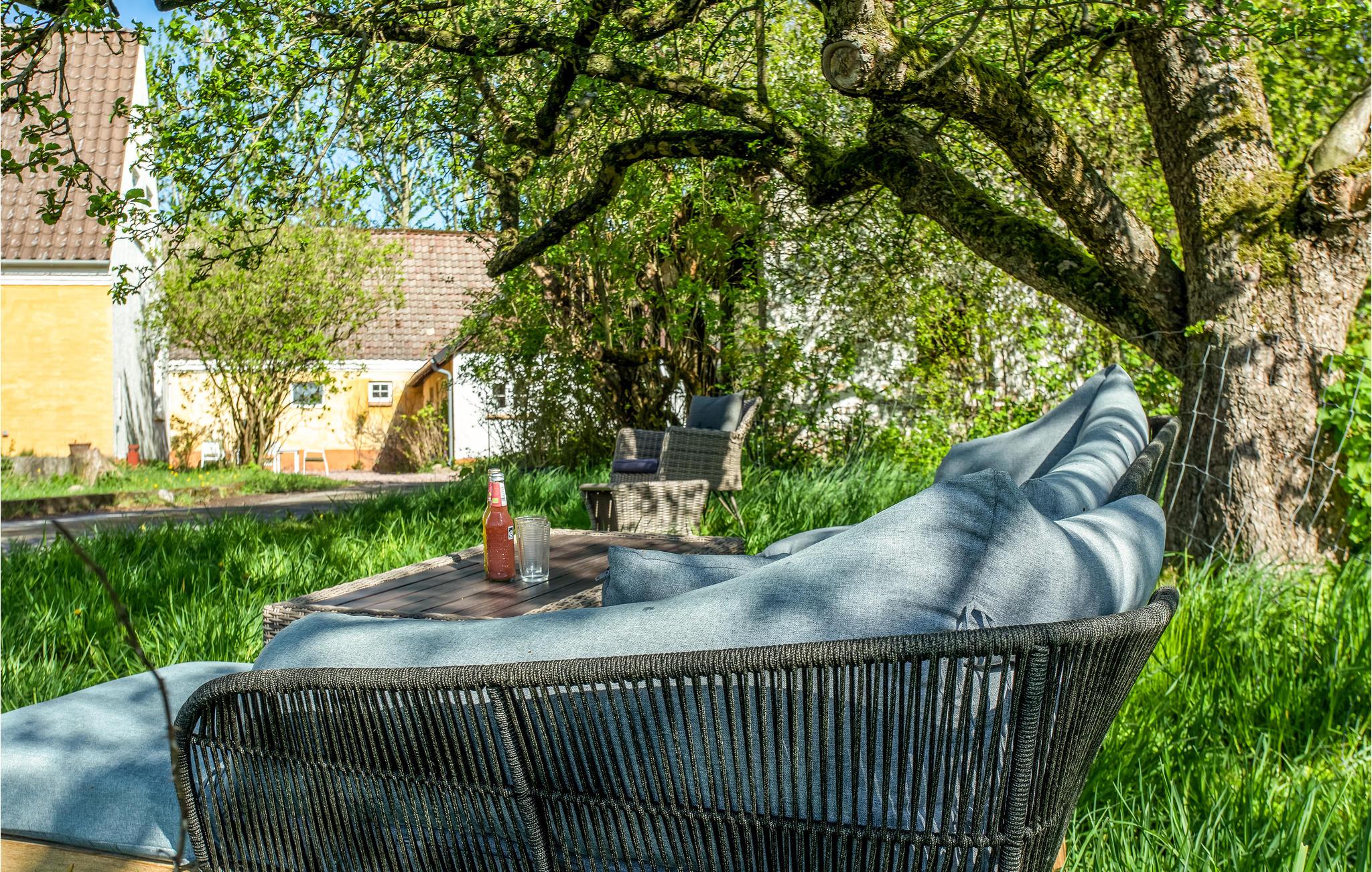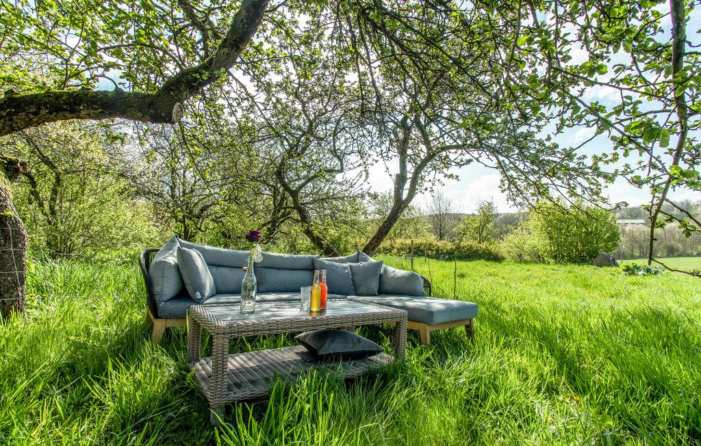Huset ligger på en åben, fælles grund tæt på skoven og byder på en vidunderlig udsigt over landskabet. Der er store frugttræer på grunden, som I må plukke af lige så meget, I har lyst, og det er også muligt at komme helt tæt på dyrene, der græsser på de tilstødene marker.
