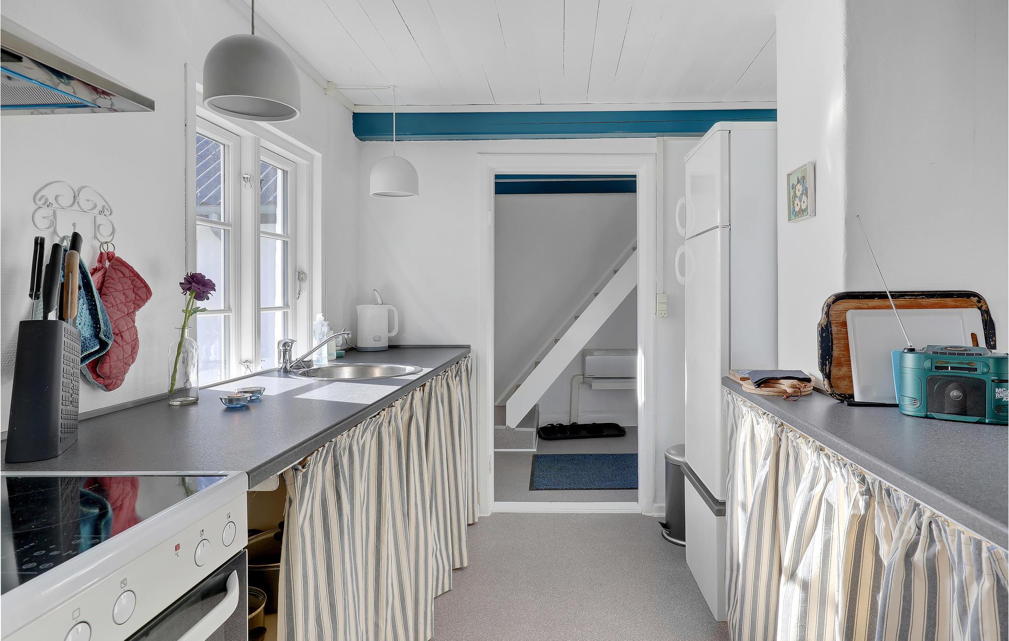 Velkommen til dette indbydende sommerhus, der kan rumme 4 personer med 2 soveværelser med dobbeltsenge. Huset er idyllisk placeret, og I har en vidunderlig udsigt over det omkringliggende landskab. De lyse og indbydende møbler gør det til et særligt hyggeligt sted. I kan tilbringe mange vidunderlige timer sammen ved brændeovnen i stuen, brænde er tilgængelig her gratis.