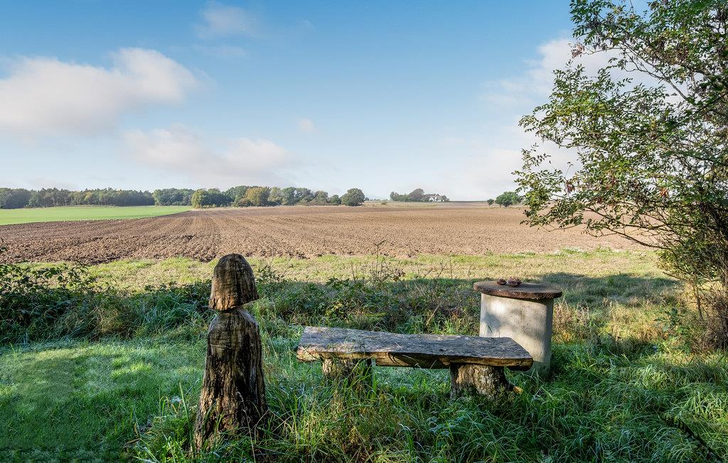 Hyggeligt sommerhus i Rø med 2 terrasser, brændeovn og udsigt til landskabet, tæt på stenstrand og golf.