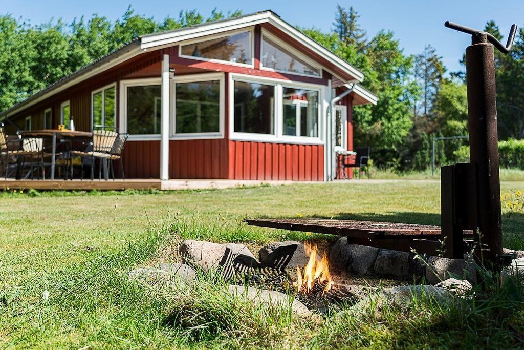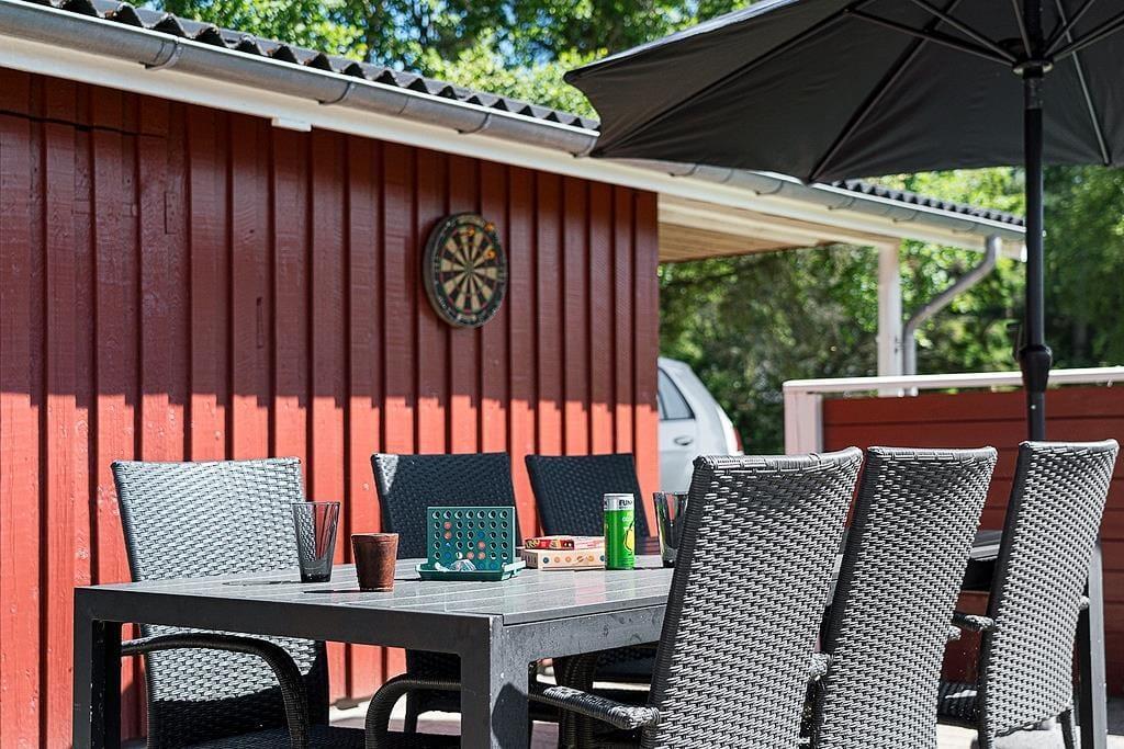Den store naturgrund ligger godt afskærmet af hæk og høje træer, og der er masser af plads til at lege tagfat eller slå kolbøtter på græsplænen. Der er gynge til børnene, dart til spillefuglene og fodboldmål til de boldglade familiemedlemmer, og outdoortyper, der elsker snobrød og røverhistorier omkring ilden, vil garanteret blive glade for bålstedet. Hvis du foretrækker en rolig stund i en god havestol, kan du i stedet sætte dig på et af husets dejlige terrasseområder – der er flere at vælge imellem, og havestuen kan selvfølgelig også tages i brug, hvis du får brug for ly for en forbipasserende sommerbyge eller aftenduggen.