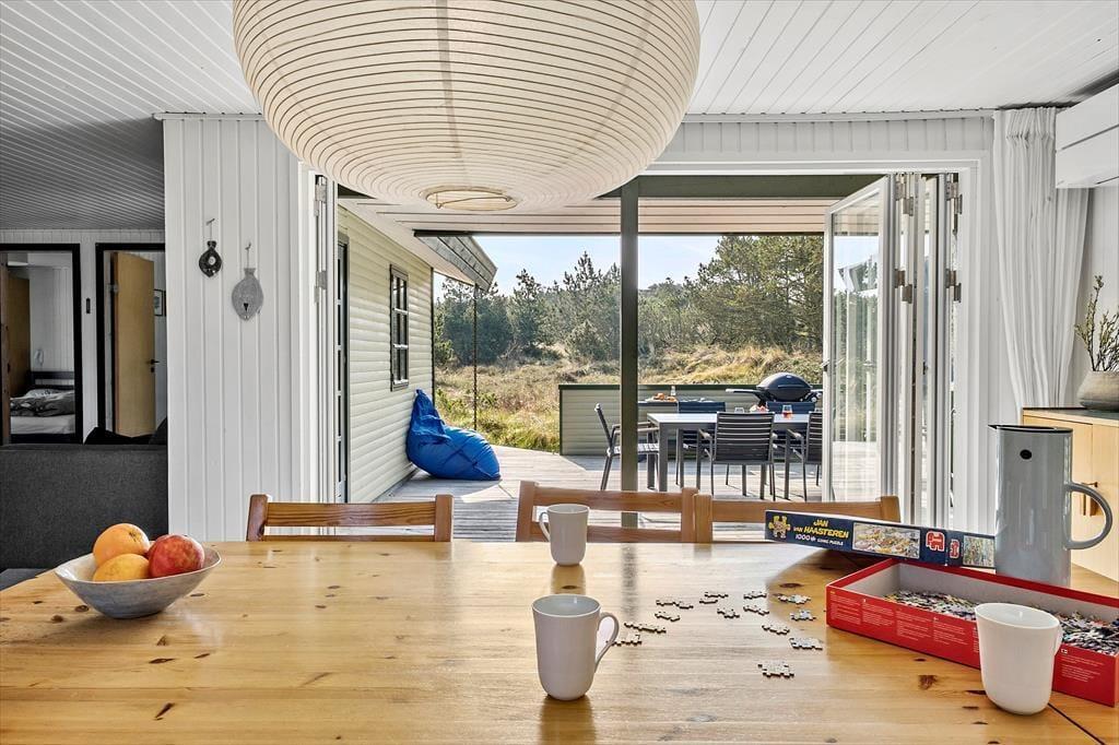 Når du ikke er ude for at udforske Rødhus og omegn, er det skønt at slappe af inde i sommerhuset. Rummene har en rar atmosfære, og der er foretaget flere gode forbedringer – blandt andet er væggene blevet lysnet med hvid maling, og badeværelset er moderniseret, så du kan tage brusebad med et lækkert rain shower og nyde godt af gulvvarmen. Opholdsrummet, hvor stue og køkken er forenet, indbyder til både leg, familienærvær og hvile, og derfor er det helt op til dig og dine kære, hvad ferietiden skal bruges på. Brændeovnen bliver sikkert et hit, hvis du er her, når det er køligt i vejret, mens terrassedørene formentlig vil blive taget flittigst i brug i sommersæsonen.