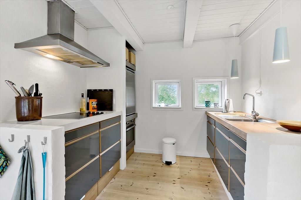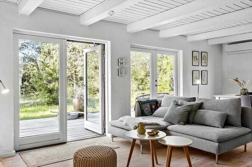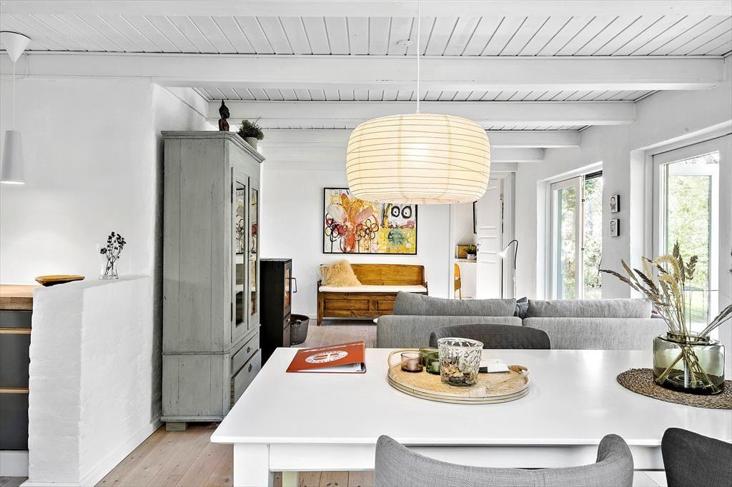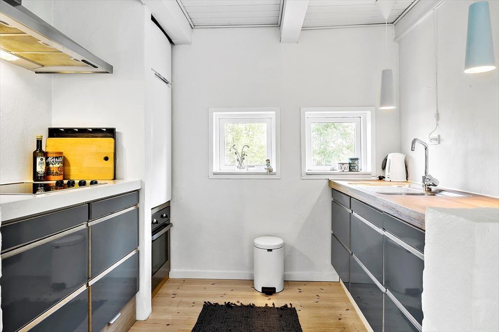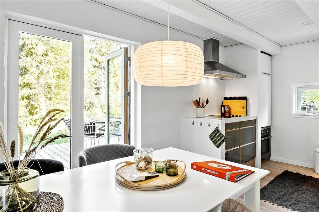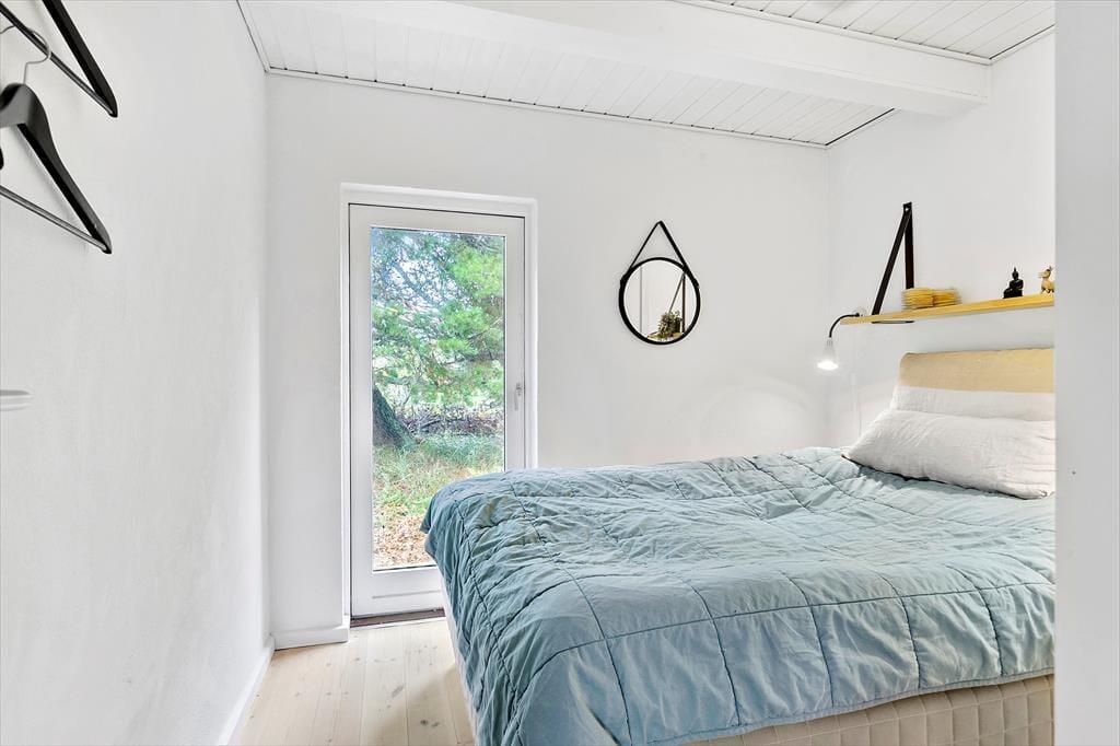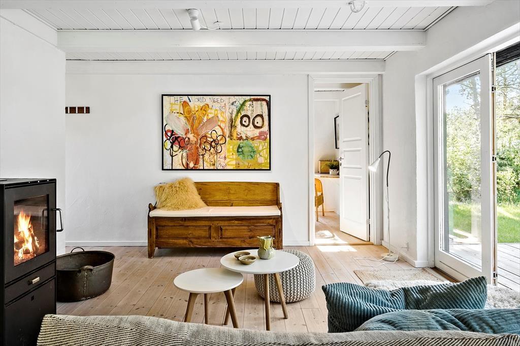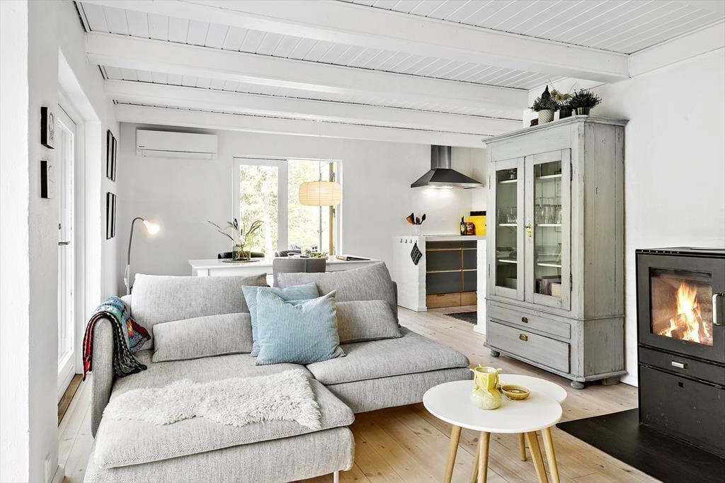 Her på adressen ligger et lille og særdeles indbydende træsommerhus på 61 m2, som er helt perfekt til den næste parferie. Huset er opført i 1969 og sidenhen blevet omsorgsfuldt renoveret, så det er et skønt sted at slappe af og hygge sig sammen. Alle rum er holdt i lyse farvetoner og indrettet på utroligt charmerende vis, og takket være de store vinduer og glasdøre har I god kontakt til naturen udenfor, selvom I tilbringer tiden inden døre. Kvadratmeterne er fornuftigt udnyttet, for stue og køkken er forenet som et skønt opholdsrum – og så endda med brændeovn og sågar en gyngestol som nogle af hyggeelementerne. Et badeværelse med gulvvarme, vaskemaskine og bruser byder huset også på foruden to fine soveværelser, hvoraf et er udstyret med dobbeltseng og det andet med en enkeltseng.