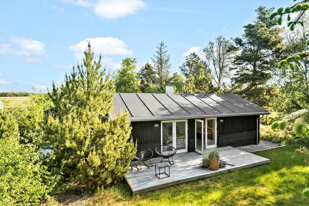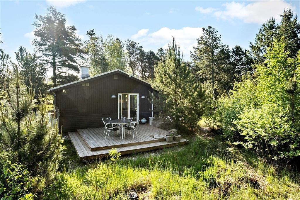Når I holder ferie her, er der stort set garanti for at se råvildt springe forbi udenfor på den 1.251 m2 store grund eller i det omkringliggende landskab. Naturomgivelserne er virkelig smukke, og det har også sat sit præg på grunden, der er bevokset med flotte løv- og nåletræer. Træerne er ikke bare flotte at kigge på, men skærmer også udearealerne af, så sommerhusets tre skønne terrasser er dejligt ugenerede.