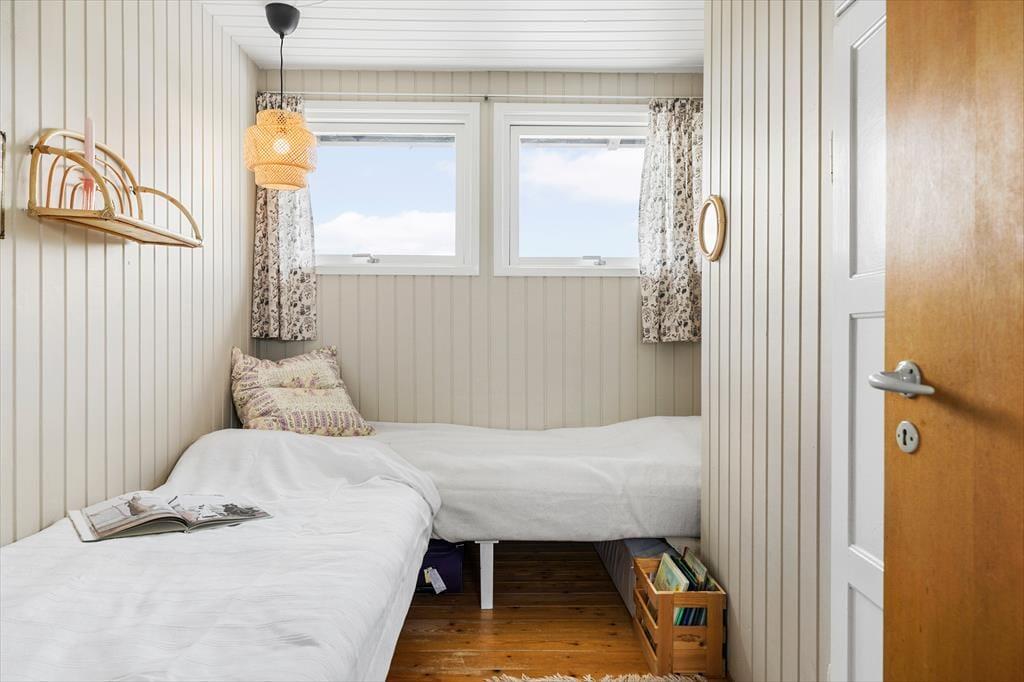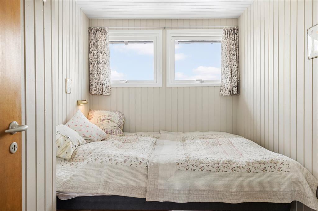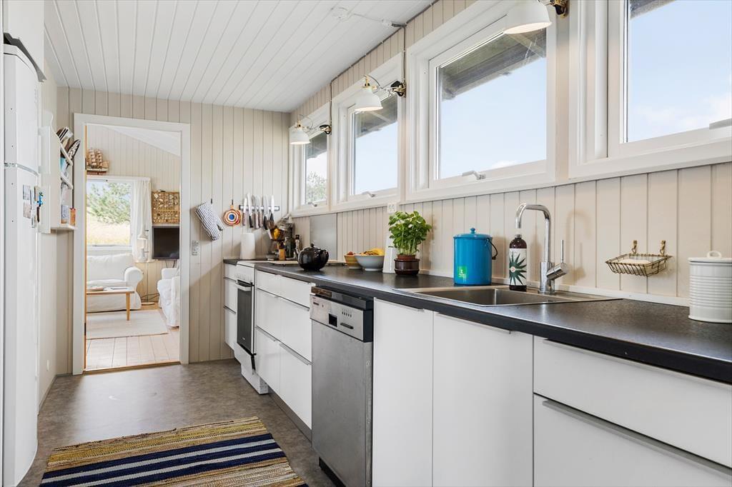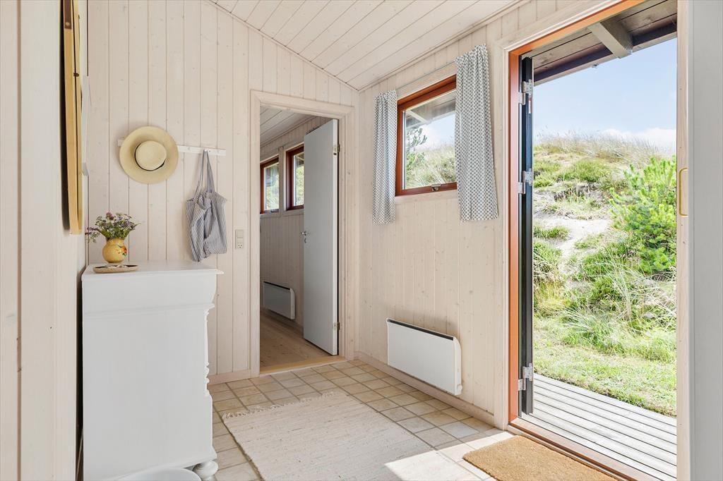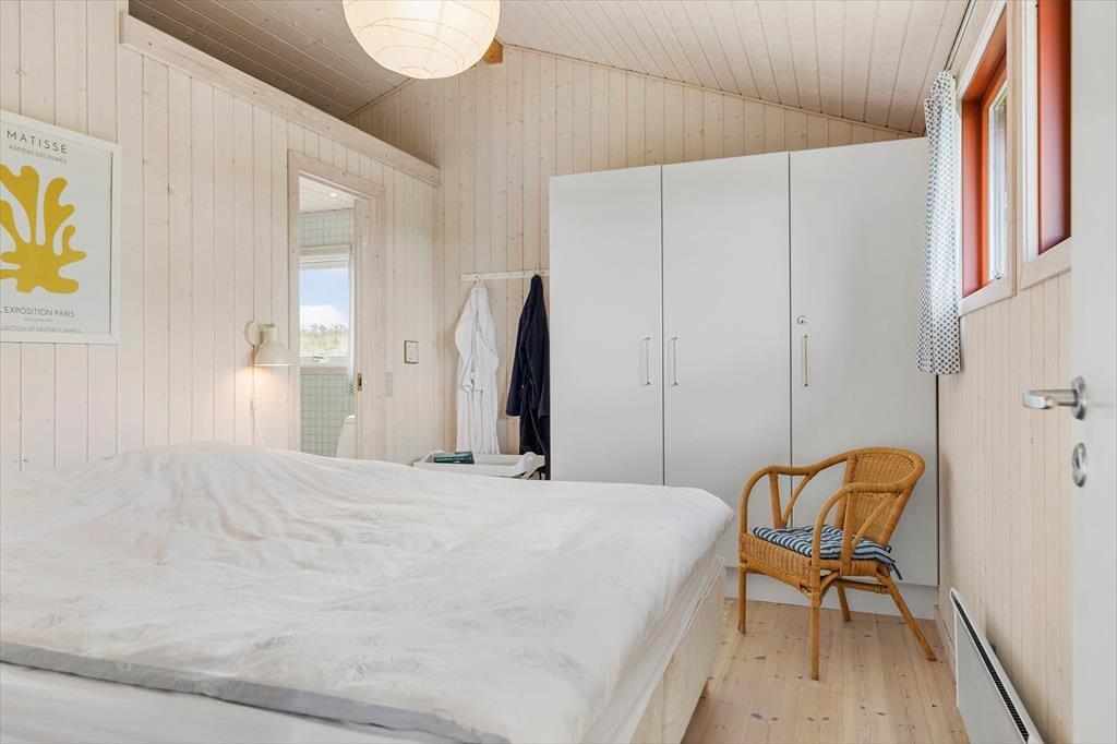 Rødhus er et storslået og vidtstrakt landskab, og inden døre i netop dette sommerhus får man virkelig fornemmelsen af holde ferie i pagt med naturen, når man kigger lige ud på lyng, marehalm og sandhjælme. Sommerhusets klassiske indretning med loft til kip, trævægge og hyggeligt møblement passer godt til naturidyllen, for der er ingen dikkedarer og overflødig luksus – bare en afslappet atmosfære og god plads til at være sammen. I alt er der 100 gode kvadratmeter at brede sig på, der blandt andet byder på en stue, et køkken, et bryggers og to badeværelser. Soveværelser er der fire af, hvoraf tre er indrettet med dobbeltseng og det fjerde byder på to enkeltsenge