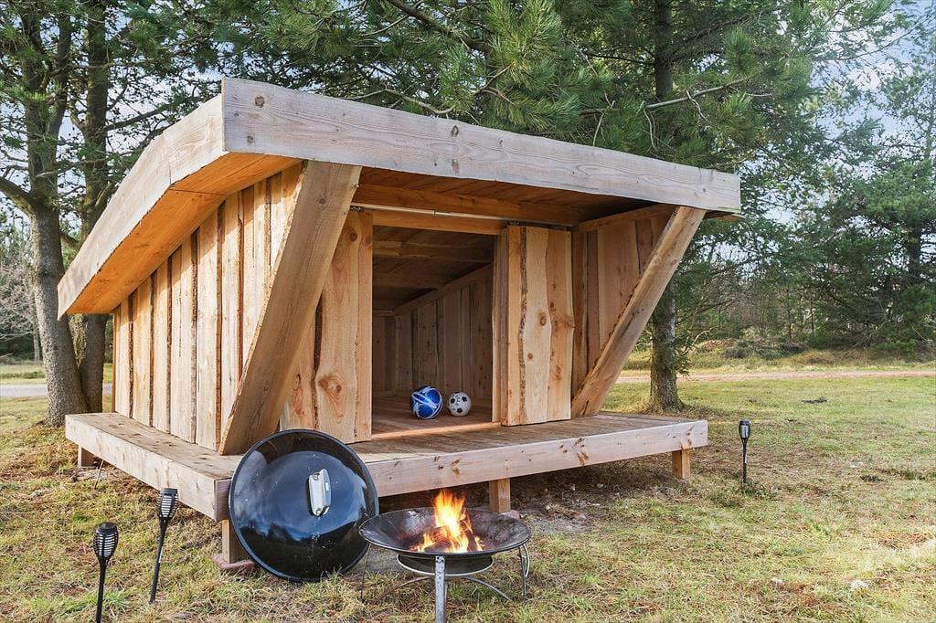 Sommerhuset ligger næsten for enden af en lille vej, så I har fred og ro omkring jer, når I slapper af på terrassen eller leger på græsplænen. Den store terrasse er afskærmet af hegn, og der er også et overdækket område, hvor I kan hygge jer med lækker mad og en god flaske vin, mens I nyder de lange, lyse sommeraftner.