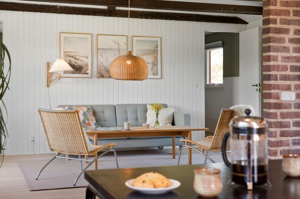 Det hyggelige sommerhus er indrettet med varme farver, fine detaljer og komfortable rammer, der gør det nemt at føle sig hjemme fra første øjeblik. I stuen kan I samles til brætspil, film eller en god snak, mens brændeovnen knitrer i baggrunden og kaster et varmt skær over rummet. Køkkenet ligger i åben forbindelse med stuen, så der er god kontakt, uanset om du dækker bord, læser avis eller smører frokost. Huset rummer to gode soveværelser – og har I brug for ekstra plads eller mulighed for at dele jer op, er annekset et oplagt sted at indrette sig med ro og privatliv. Alt i alt en rigtig god base til både små og store feriedrømme.