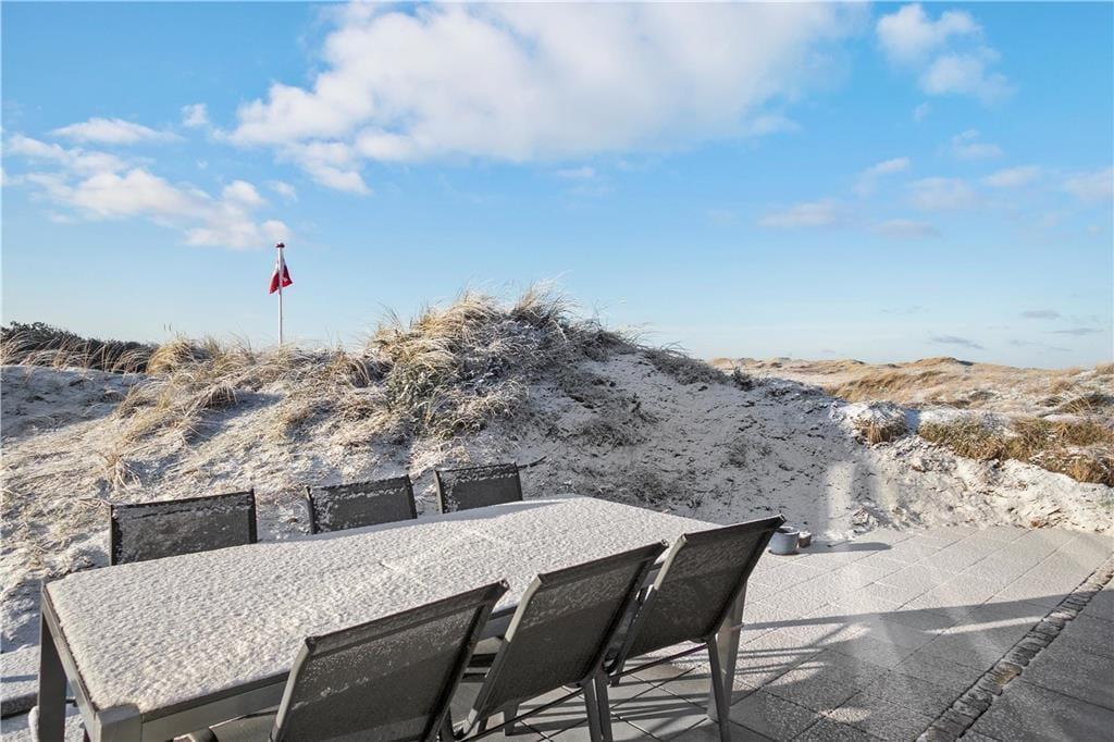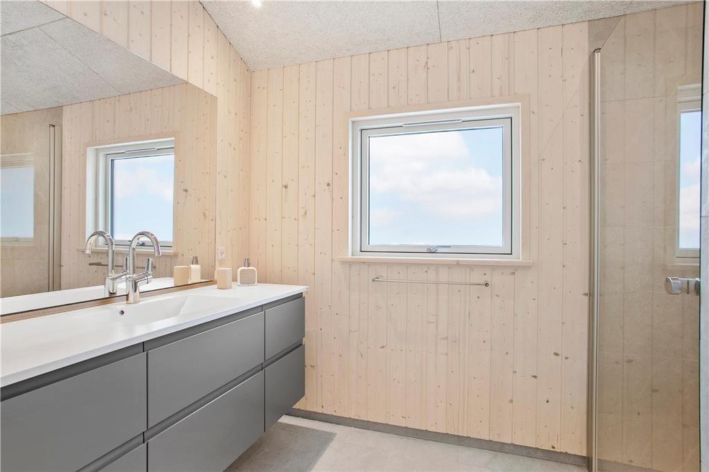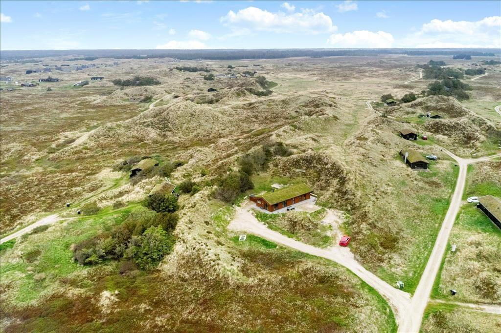 På den 2.883 m2 store naturgrund omkranses sommerhuset af bløde klitter, så det ligger nærmest i en gryde. Det betyder, at I bor dejligt afskærmet og ugeneret, og der er god mulighed for at finde en opholdsplads med læ, hvis I trænger til en eftermiddagslur i solen. Kommer I hjem fra et dyp i Vesterhavet, kan I skylle sand og saltvand af under den udendørs bruser, før I igen er klar til driverlivet på terrassen.