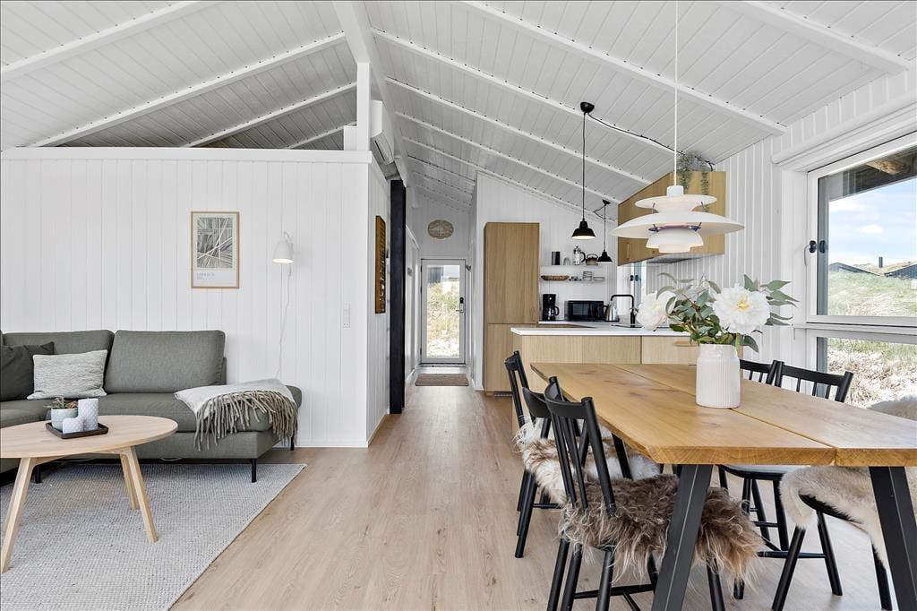 Sommerhus i Rødhus, Nordjylland, med plads til 6 voksne og 1 husdyr. Der er en hyggelig indretning med bl.a. brændeovn, og du finder desuden vaskemaskine, opvaskemaskine og tørretumbler i boligen.
