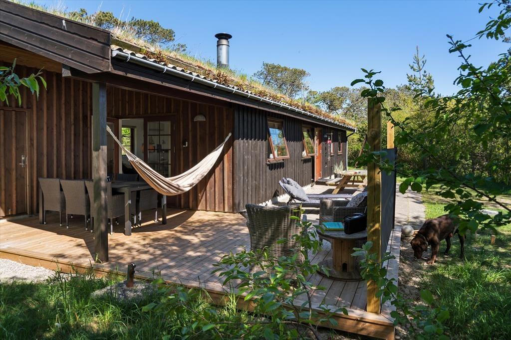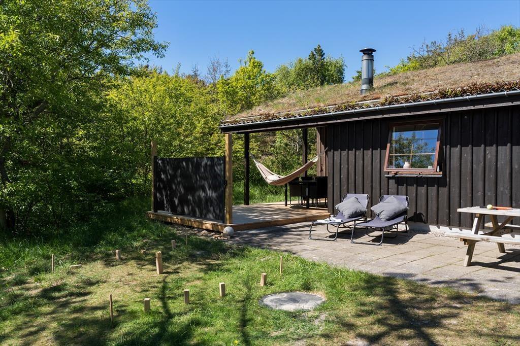 På den store naturgrund er der gode muligheder for børnene til at lege og spille bold, og de store træer rundt om sommerhuset giver god læ for vinden. Den danske sommer og de mange soltimer kan nydes fra terrassen, og aftenen kan forlænges et par timer under den overdækkede del.