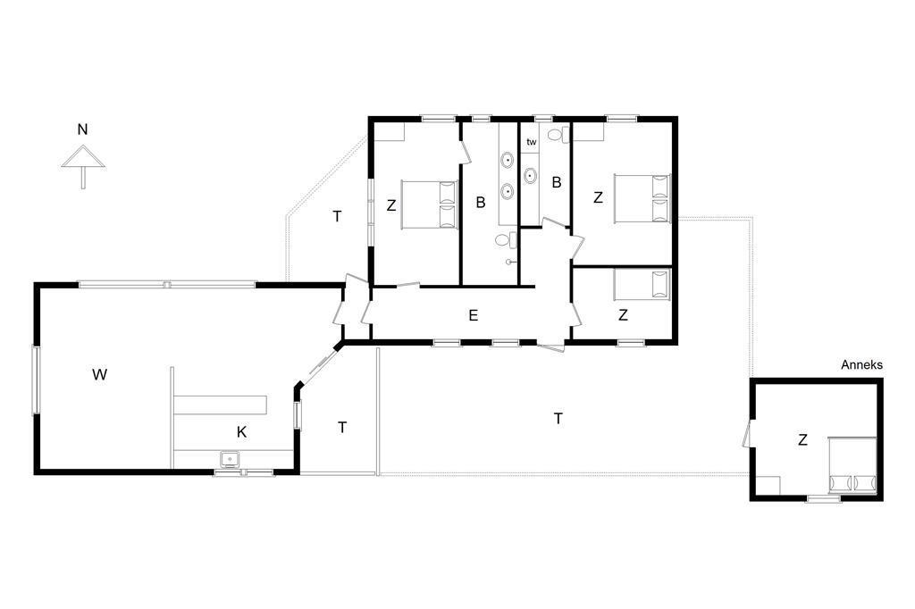 Såfremt I søger noget helt specielt, så er dette sommerhus det helt rigtige alternativ. Sommerhuset er opført i træ med store rum og med et fantastisk flot græstag, der er kendetegnende for mange af husene i dette område. Huset er lyst og moderne indrettet og udstråler overalt hygge og feriestemning. 3 gode soveværelser i hovedhuset samt 2 sovepladser i husets anneks. 2 badeværelser, hvoraf det store badeværelse har en direkte adgang fra husets største soveværelse. Hovedhuset er opført i 2 sektioner knyttet sammen af en lille gang. Denne opbygning betyder, at man i modsætning til mange andre huse har mulighed for at opholde sig i stuerne uden risiko for at forstyrre dem der opholder sig i værelserne. Grundet husets beliggenhed og enestående nærhed til Veterhavet, så skal man være i god til hvis man ønsker at leje huset i en bestemt periode.