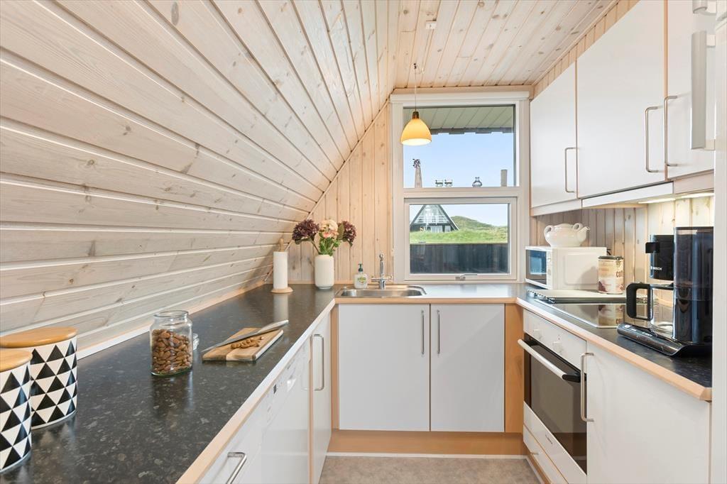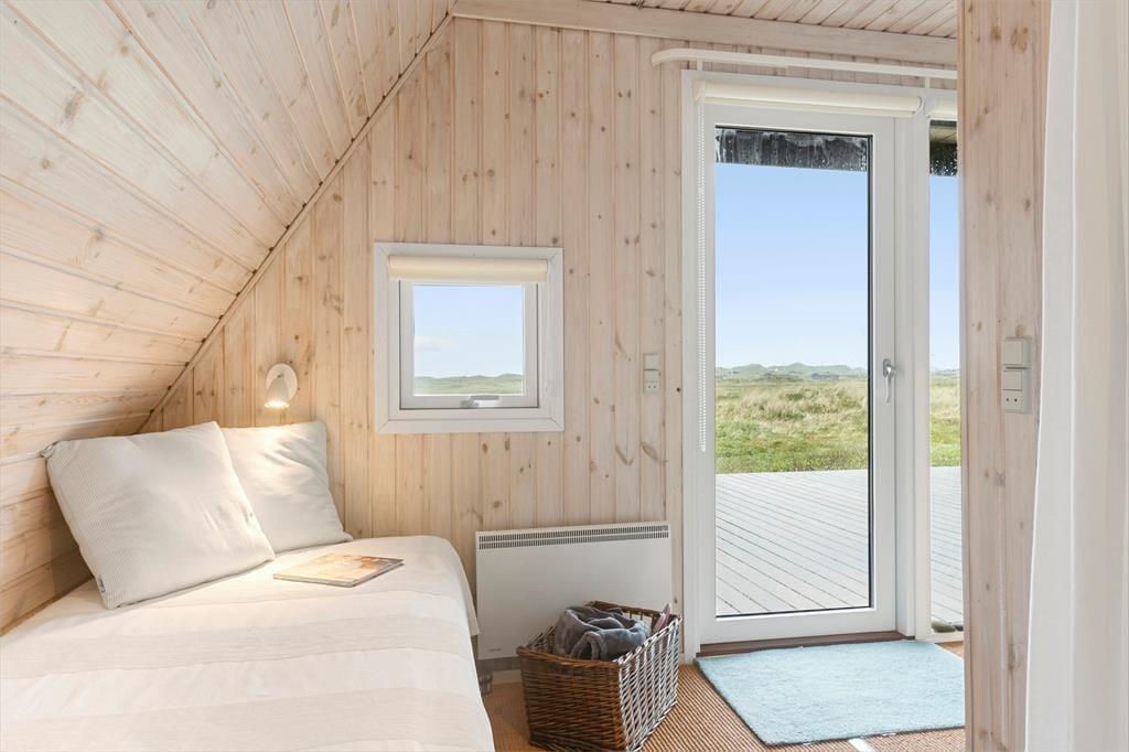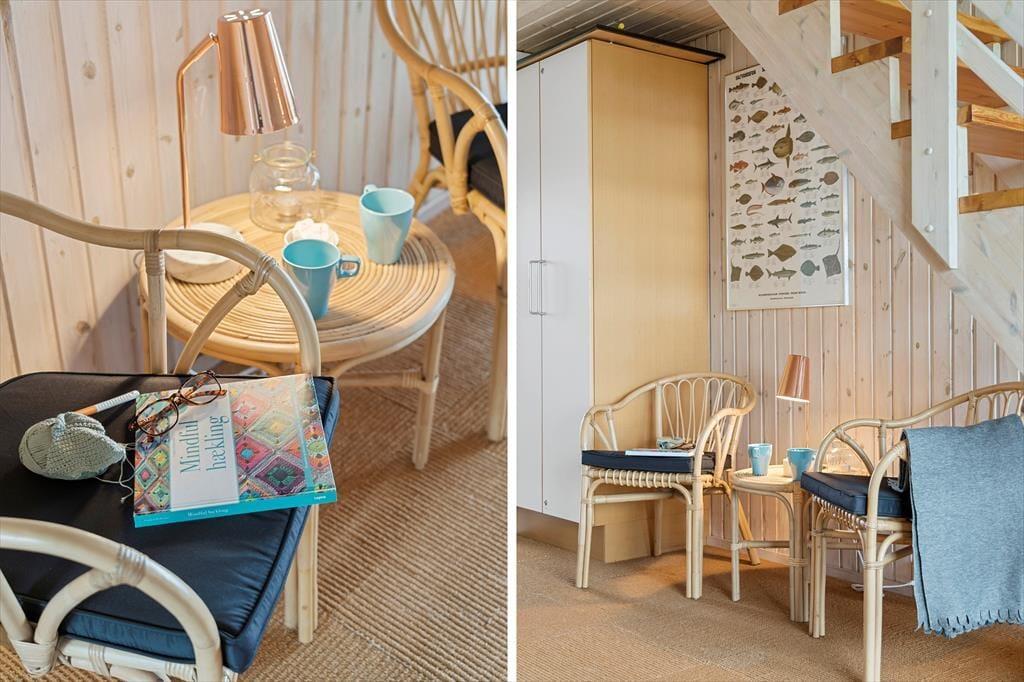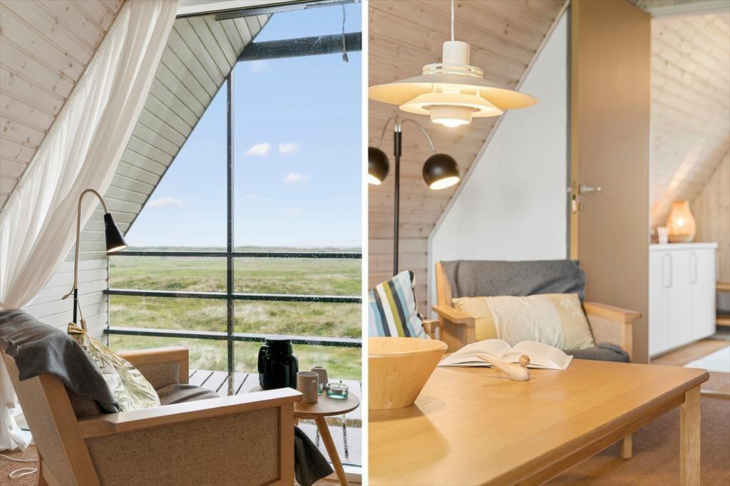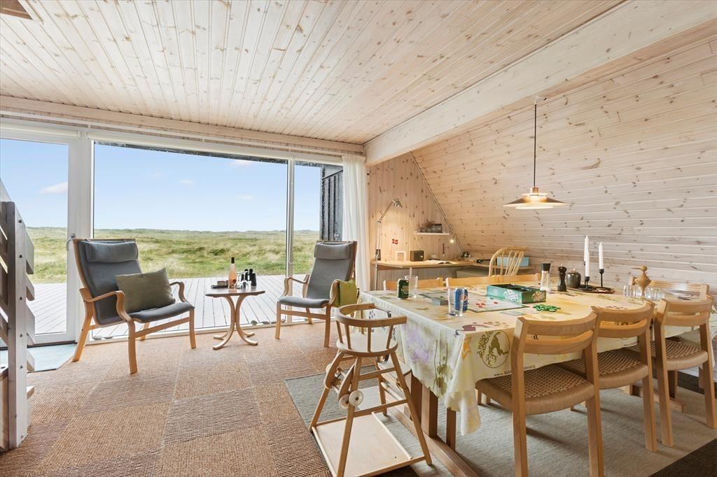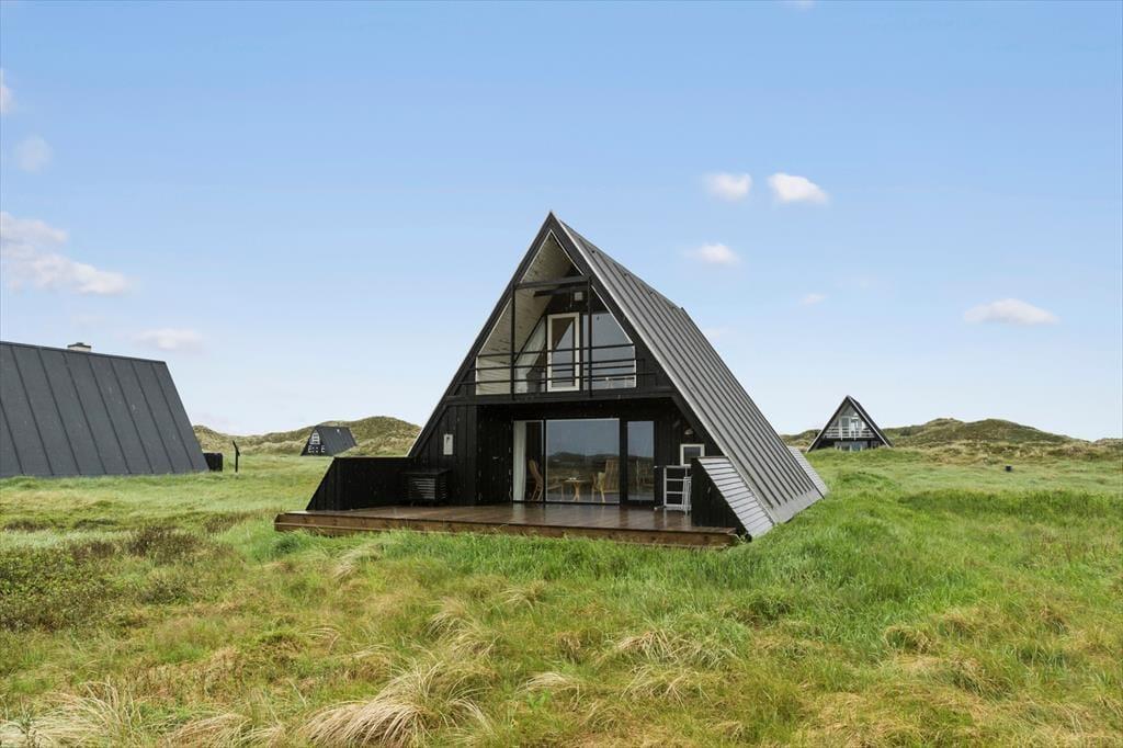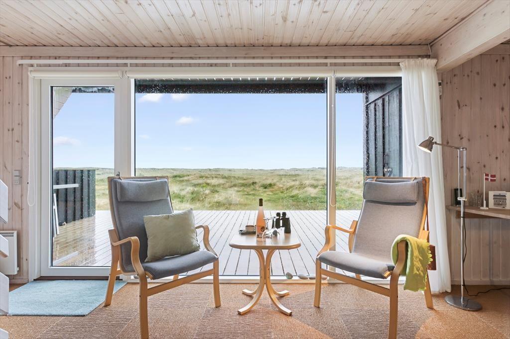Udenfor venter to dejlige terrasser, hvor du kan nyde solen hele dagen. Den ene terrasse er sydvendt og ideel til morgenkaffen, mens den anden vender mod vest og indbyder til middag i solnedgangen. Begge terrasser er udstyret med havemøbler og parasol, så du kan slappe af og nyde den friske luft i fulde drag. Grunden er omgivet af klitter og højt græs, hvilket giver en følelse af at være helt tæt på naturen. Fra første sal har du desuden en balkon, hvor du kan nyde den ugenerede udsigt over landskabet og Vesterhavet.