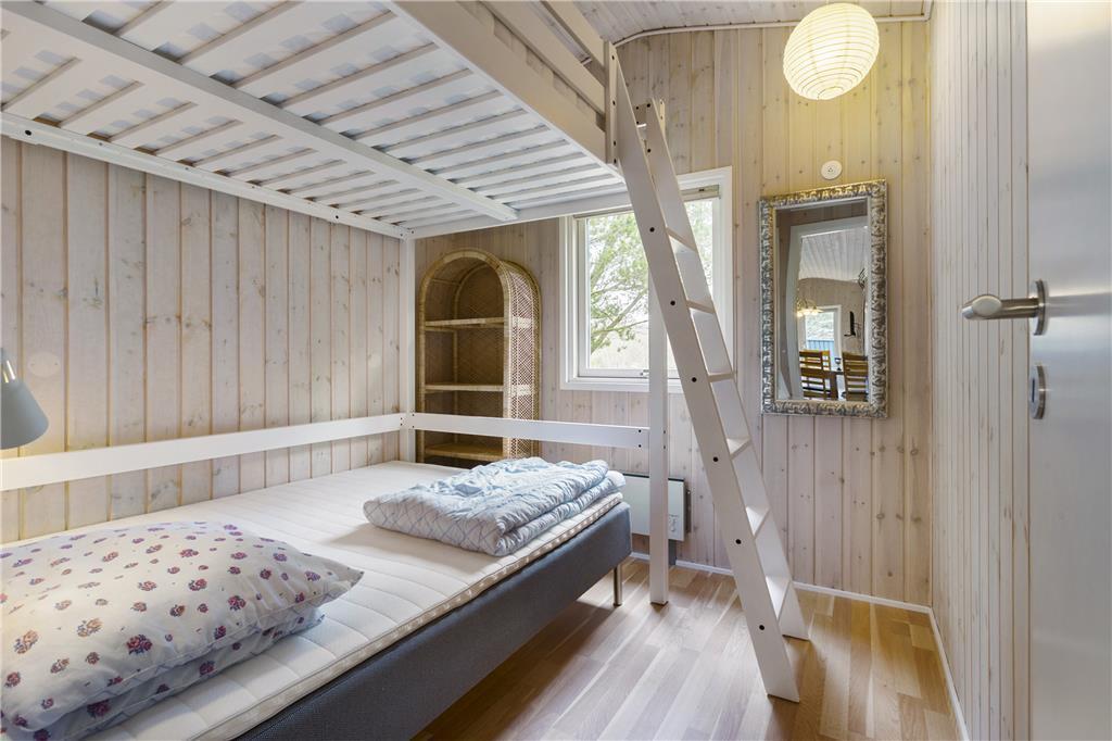 Når du træder indenfor i sommerhuset, mødes du af en lys og indbydende atmosfære. Den hyggelige stue med højt til loftet og en knitrende brændeovn gør det til et perfekt sted at samles med familien eller venner. Her kan du slappe af med en god bog, spille brætspil eller bare nyde varmen fra ilden efter en dag ude i naturen. Det åbne køkken-alrum gør det nemt at tilberede måltider sammen, og den dejlige, lyse indretning understøtter en afslappet ferieoplevelse. Uanset om du vælger at bruge tid på at lave mad eller bare vil nyde hinandens selskab, er her en varm og indbydende atmosfære, der gør det let at trække sig tilbage og finde ro.